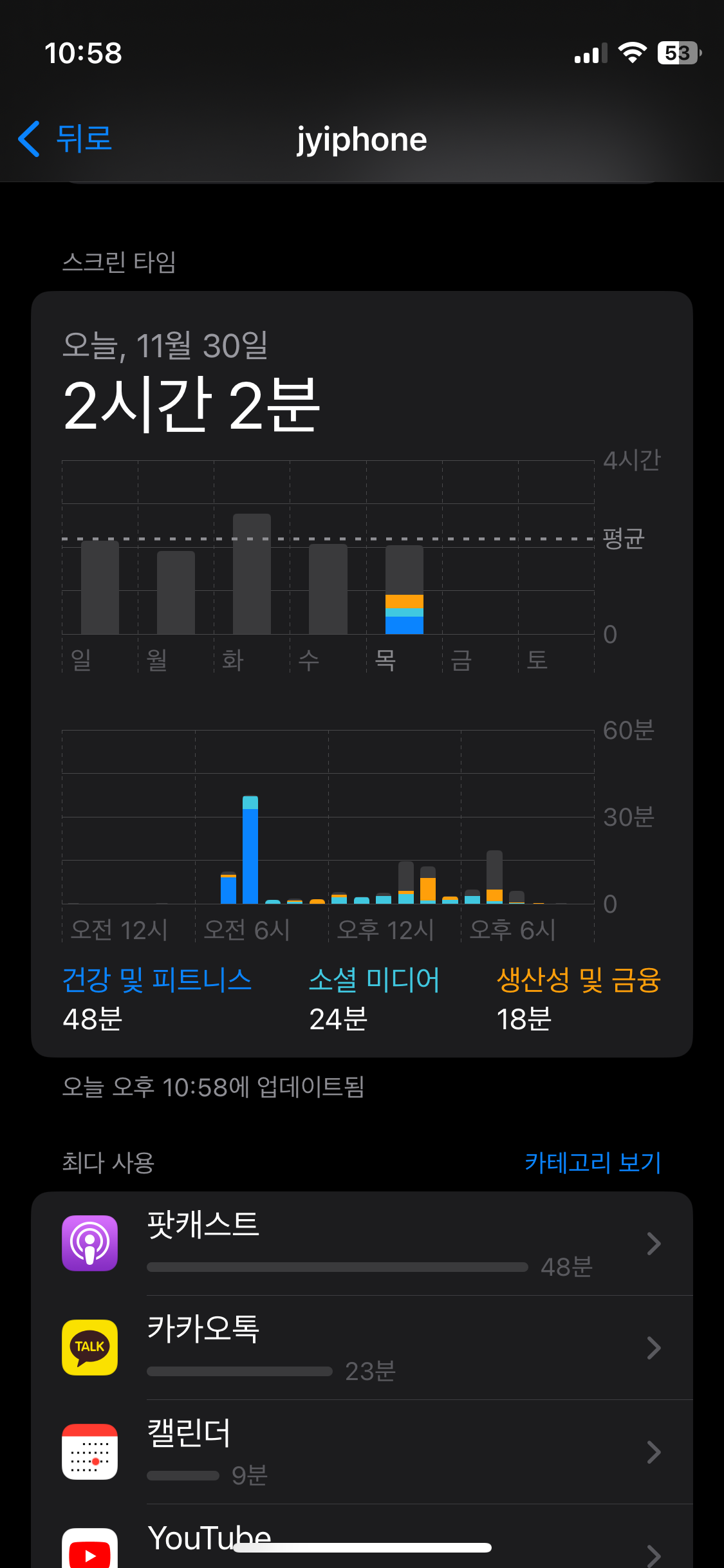 52일차인 오늘은 2시간 2분을 사용했다고 하는데요,