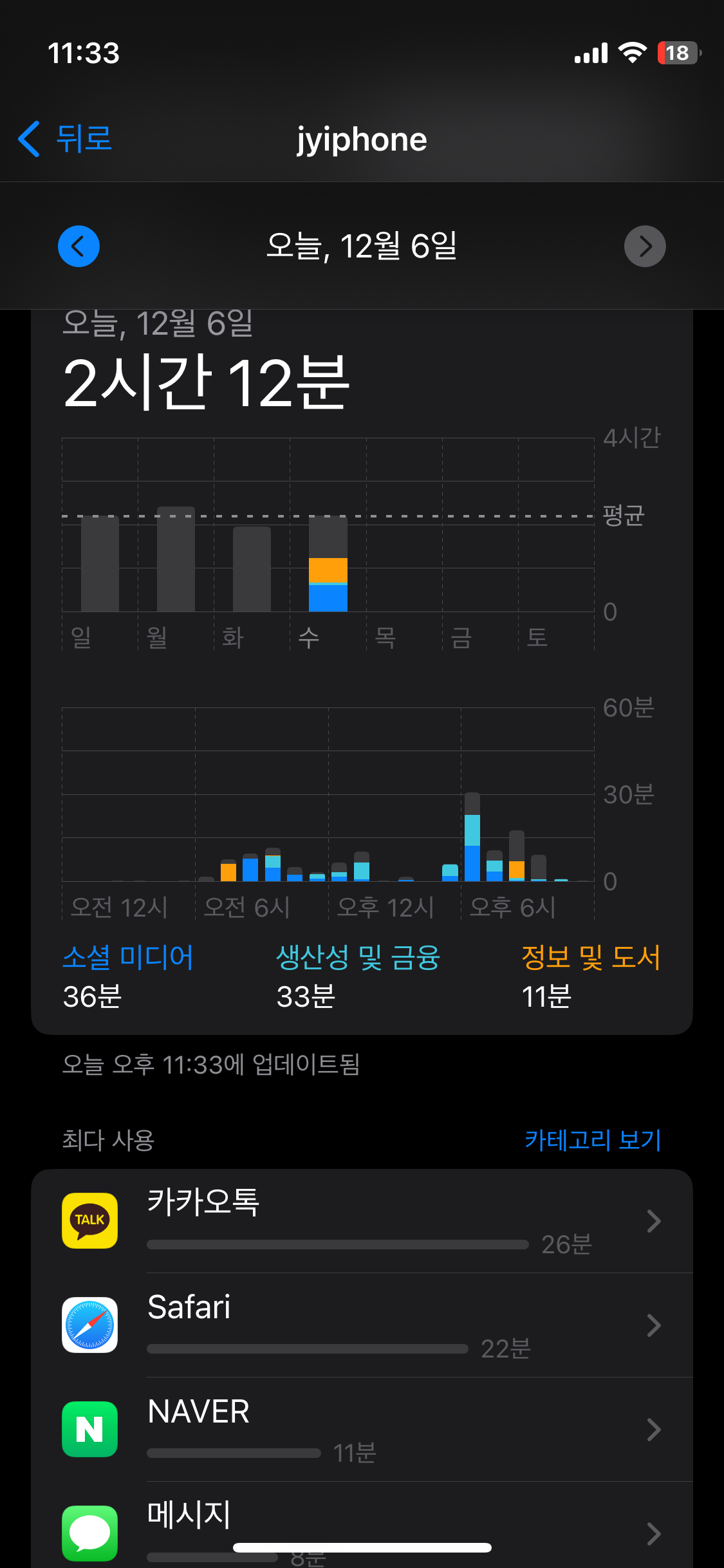 오늘 동생 생일이어서 카톡 선물하기를 한참 들여다 보느라 카톡 사용시간이 제일 많았습니다.