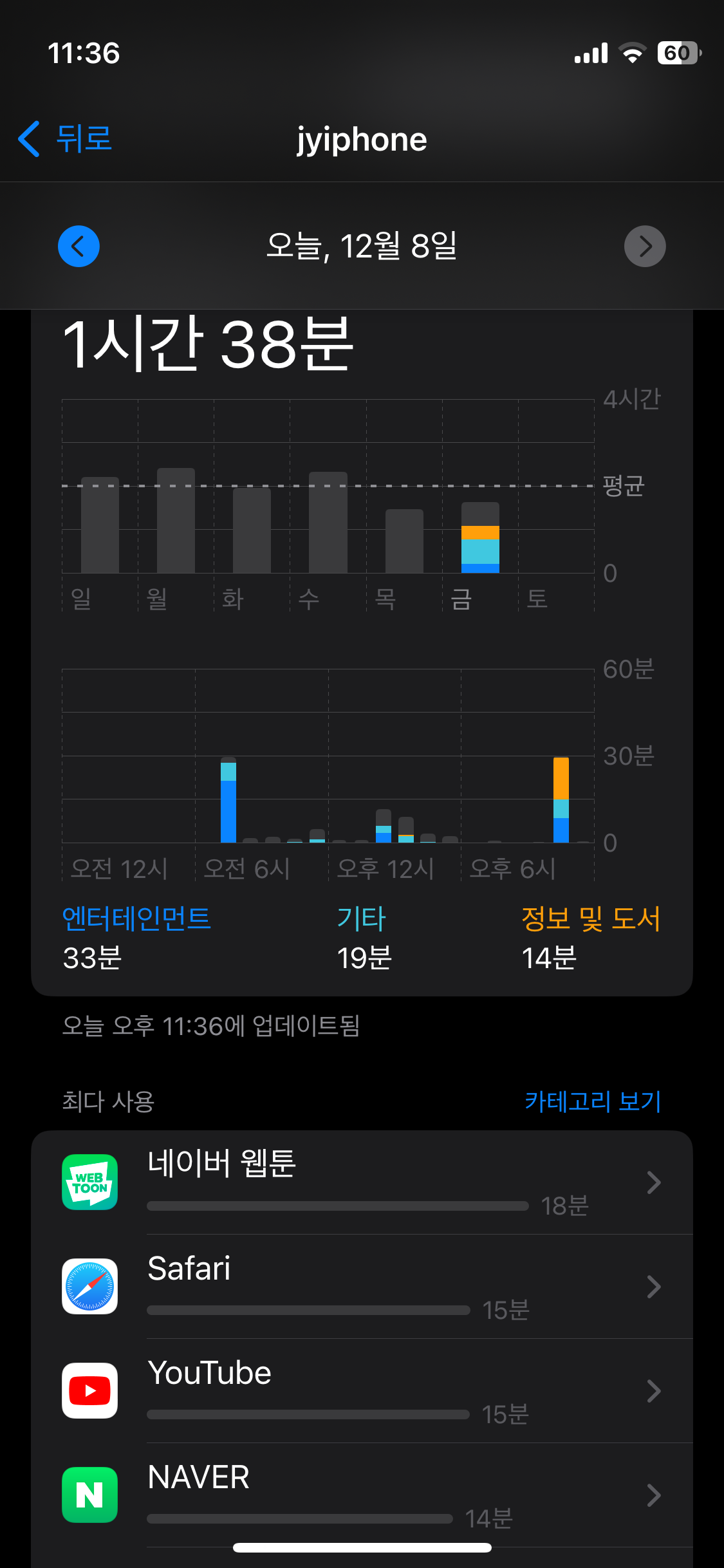 사용 시간은 1시간 38분으로 많은 편은 아니지만