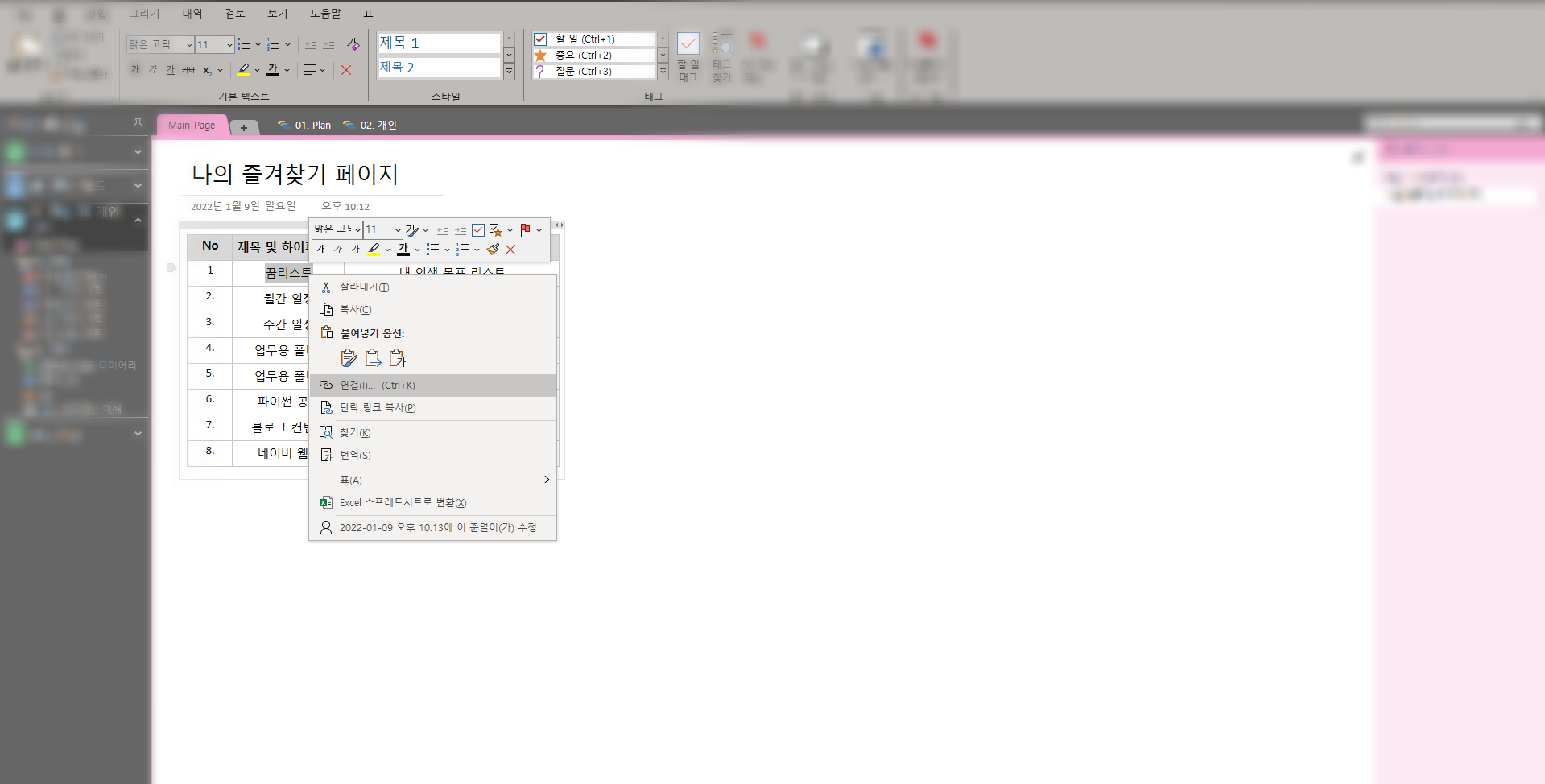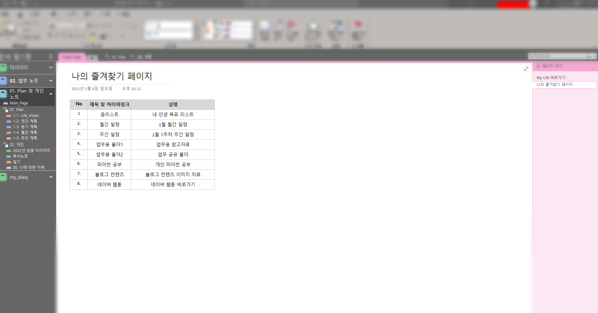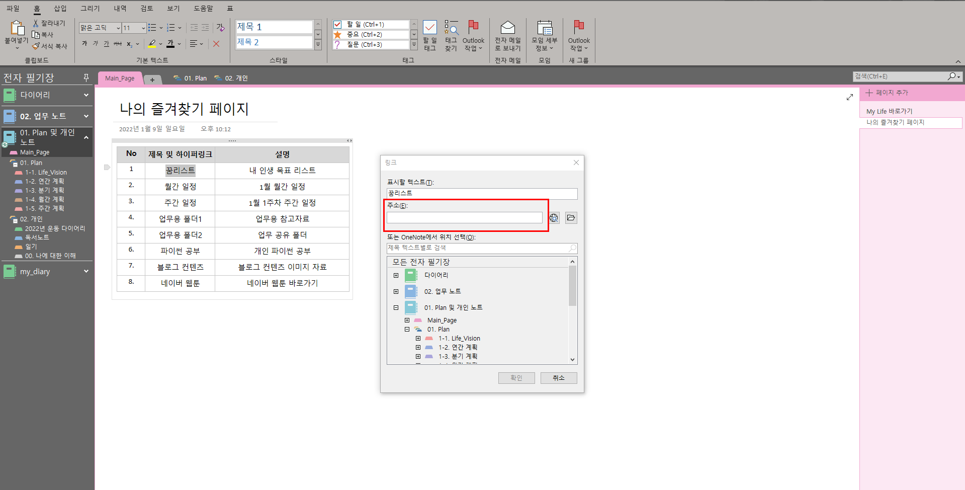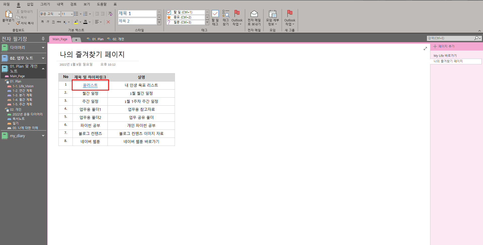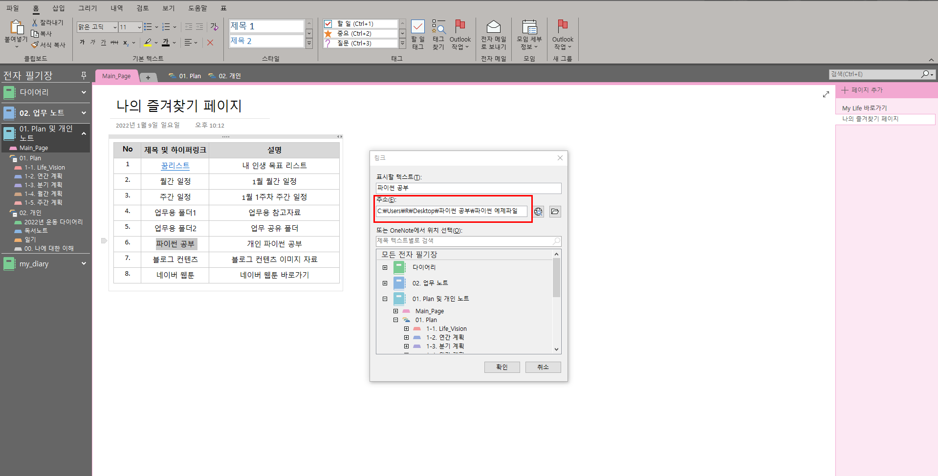 1. 자주 사용하는 원노트 공간 혹은 내 컴퓨터 속 폴더 리스트 만들기