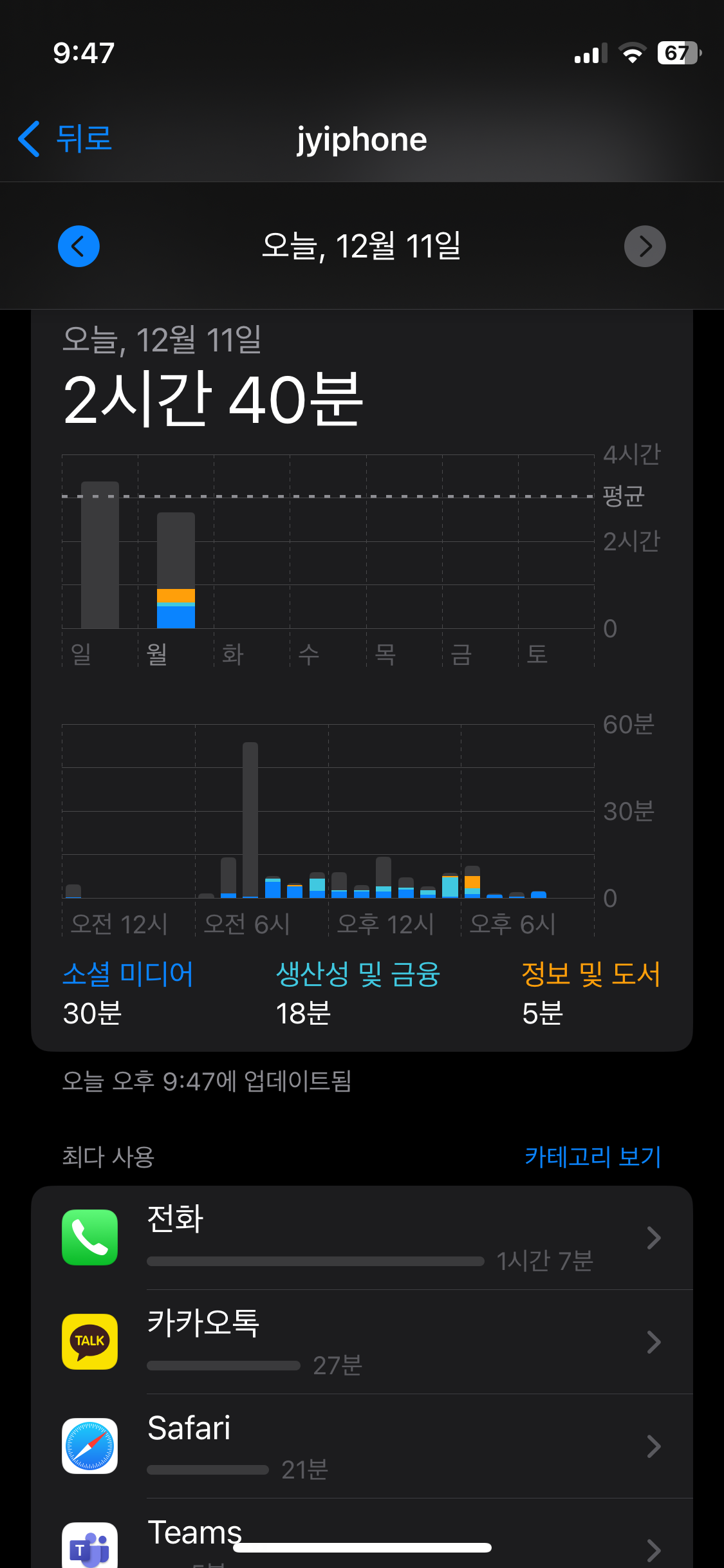 63일차인 오늘은 2시간 40분 사용했다고 합니다.