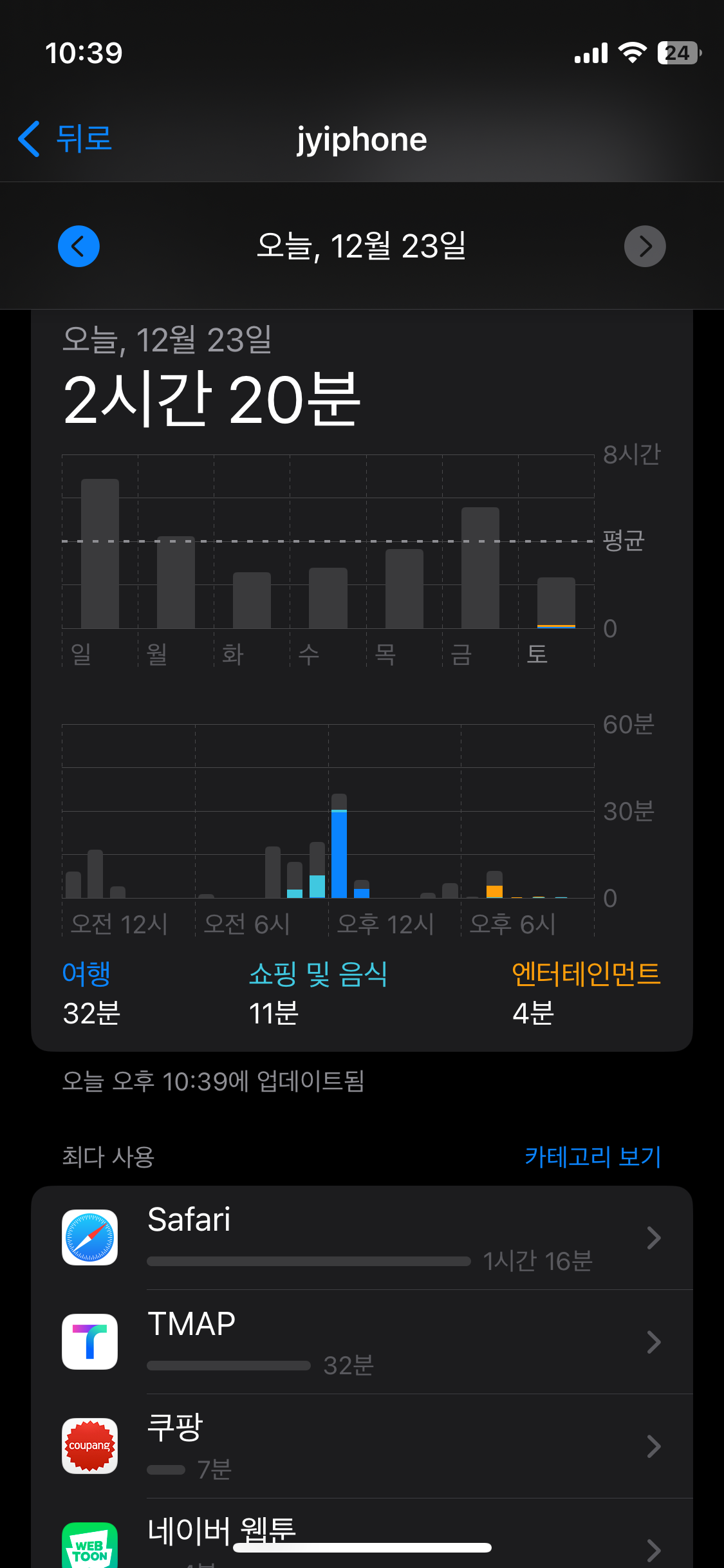 아픈 와이프를 위해 거의 집에만 있던 것 치고는 휴대폰을 많이 안봤네요. 내일은 크리스마스 이브입니다. 즐거운 하루 보내세요.