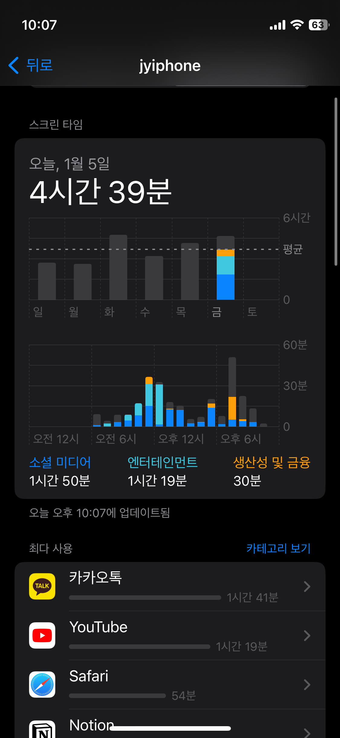 음... 잘못된 것입니다... 유튜브로 음악을 1시간 들었는데요, 그게 그대로 반영이 되었습니다.