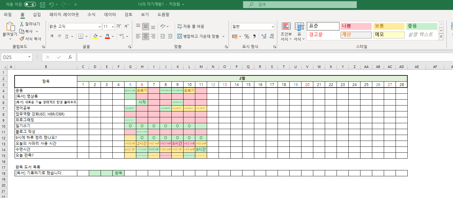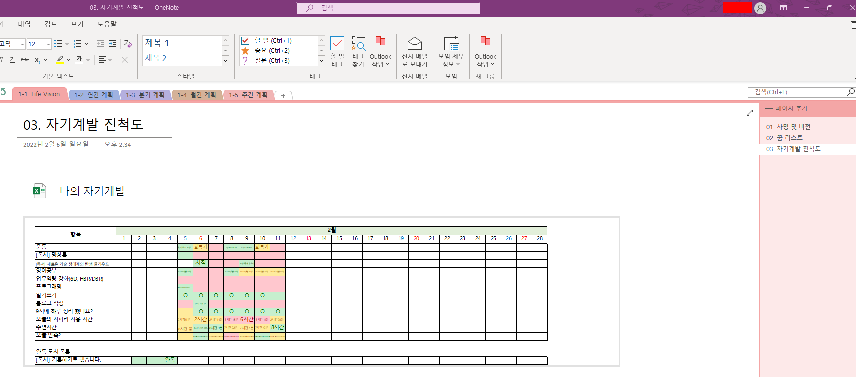 엑셀과 원노트로 기록하는 자기계발 트래커