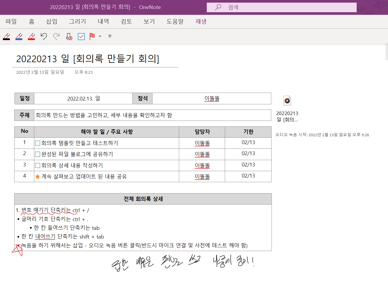 이제, 원노트를 활용하여 스마트하게 회의록을 작성해봅시다.