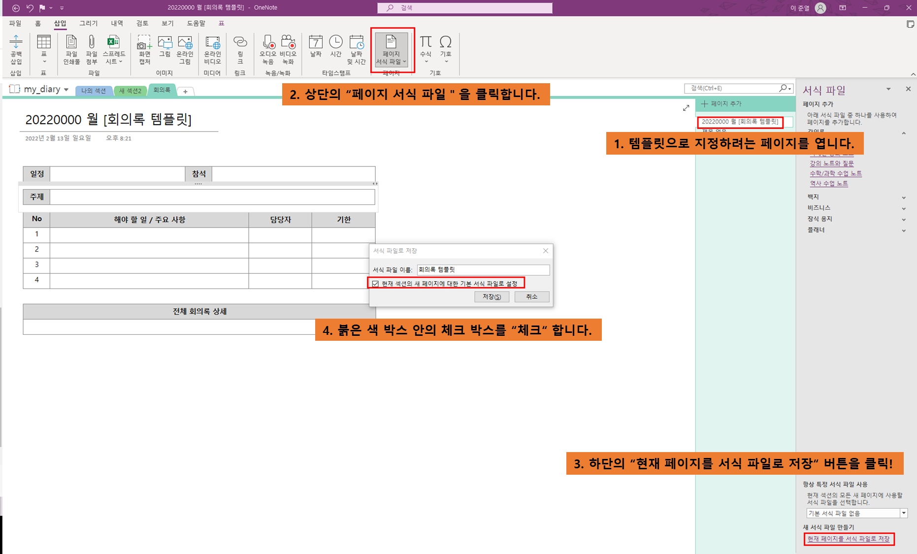 그럼 지금부터, 원노트 서식파일 사용방법에 대해 알아보겠습니다.