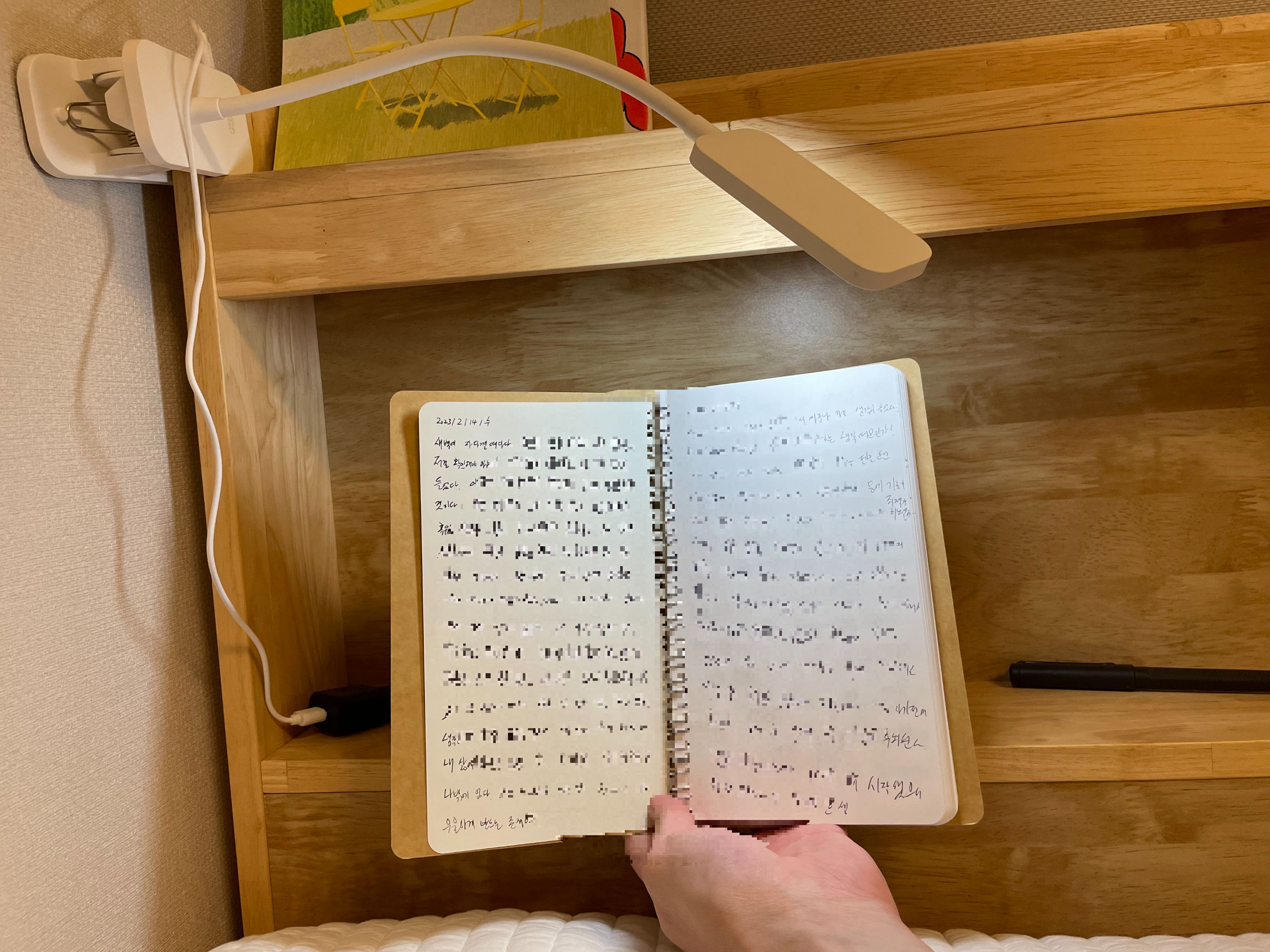 • 내가 처한 상황을 바라보게 됩니다. 특히 재밌었던건, 아침에 일어나자마자 휴대폰을 보고 어젯밤 벌어진 일들을 확인하고 싶은 강렬한 욕망을 여기에 그대로 썼습니다. 그리고 그에 따른 부작용들을 나열해보았죠. 그러니까 자연스럽게 그런 욕구들이 사그라드는 것이 느껴졌습니다. 느끼는 대로, 생각나는 대로 쓰는 것이 참 좋았습니다.