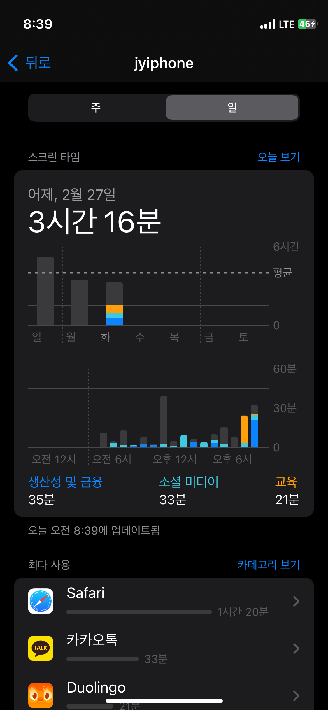 141일차인 어제는 3시간 16분을 사용했습니다.
