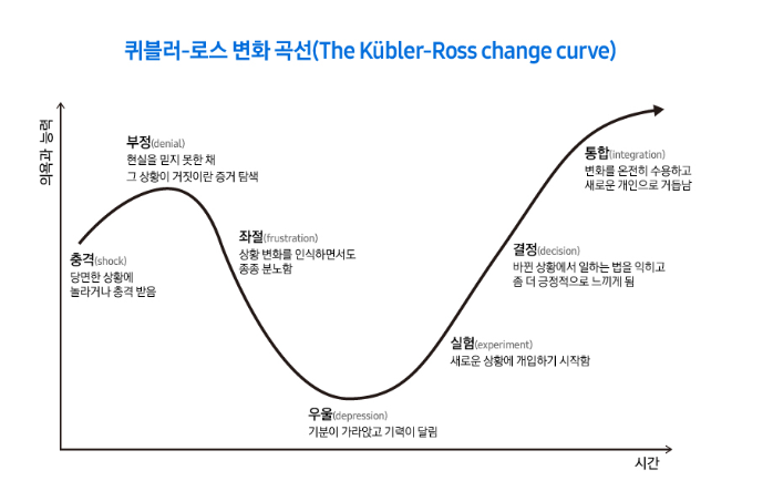 변화를 마주하는 인간의 감정이 어떤 단계로 나아가는지를 살펴봅시다.
