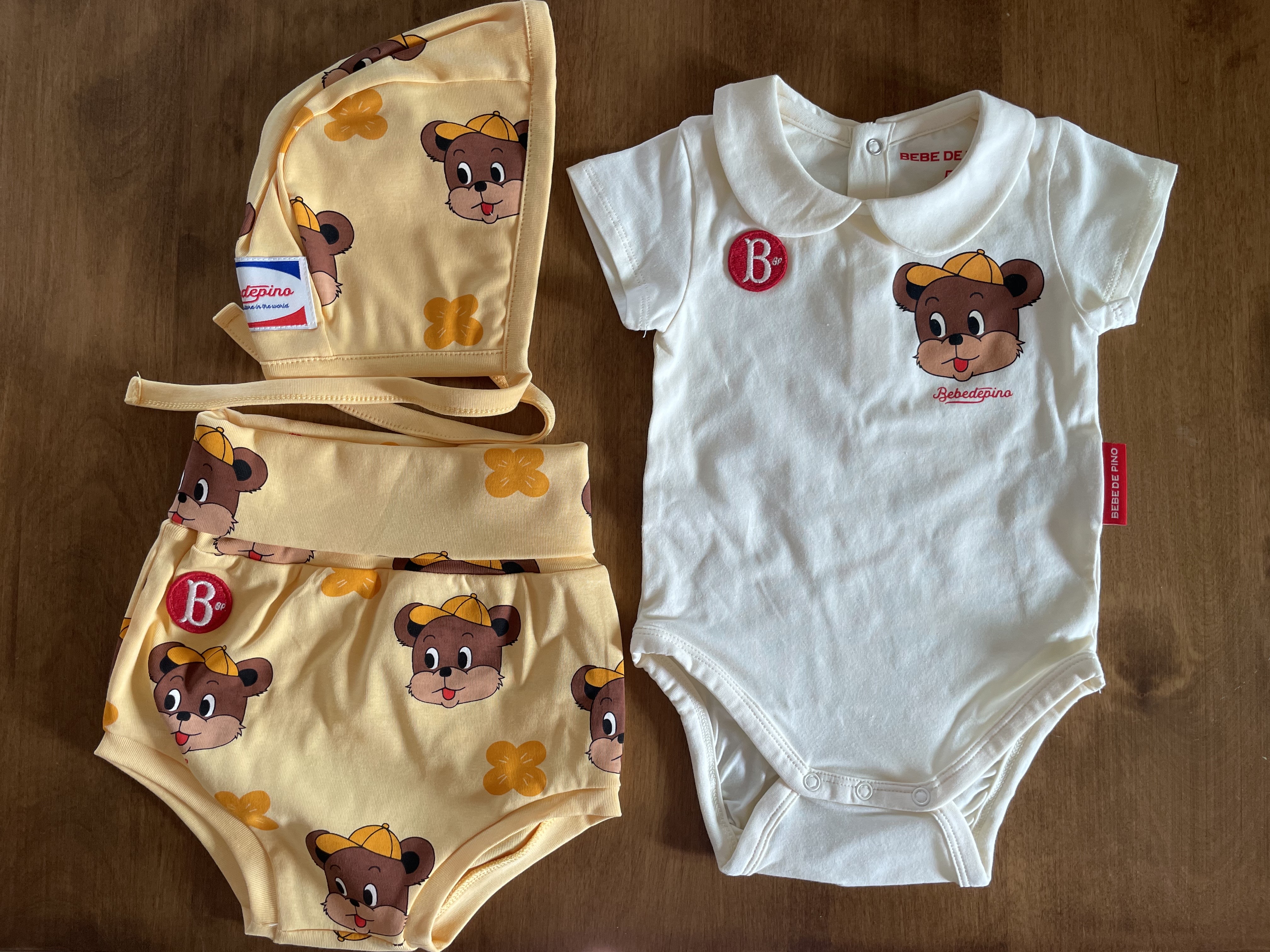 이 옷도 점프 수트 같이 일체형으로 되어 있습니다. 옷 사이즈를 보면 아시겠지만 이 옷도 조금 컸을 때 입는 옷이라고 합니다. 이걸 입고 아장아장 걸어다닐 아기를 생각하니 벌써부터 감동이 밀려옵니다.