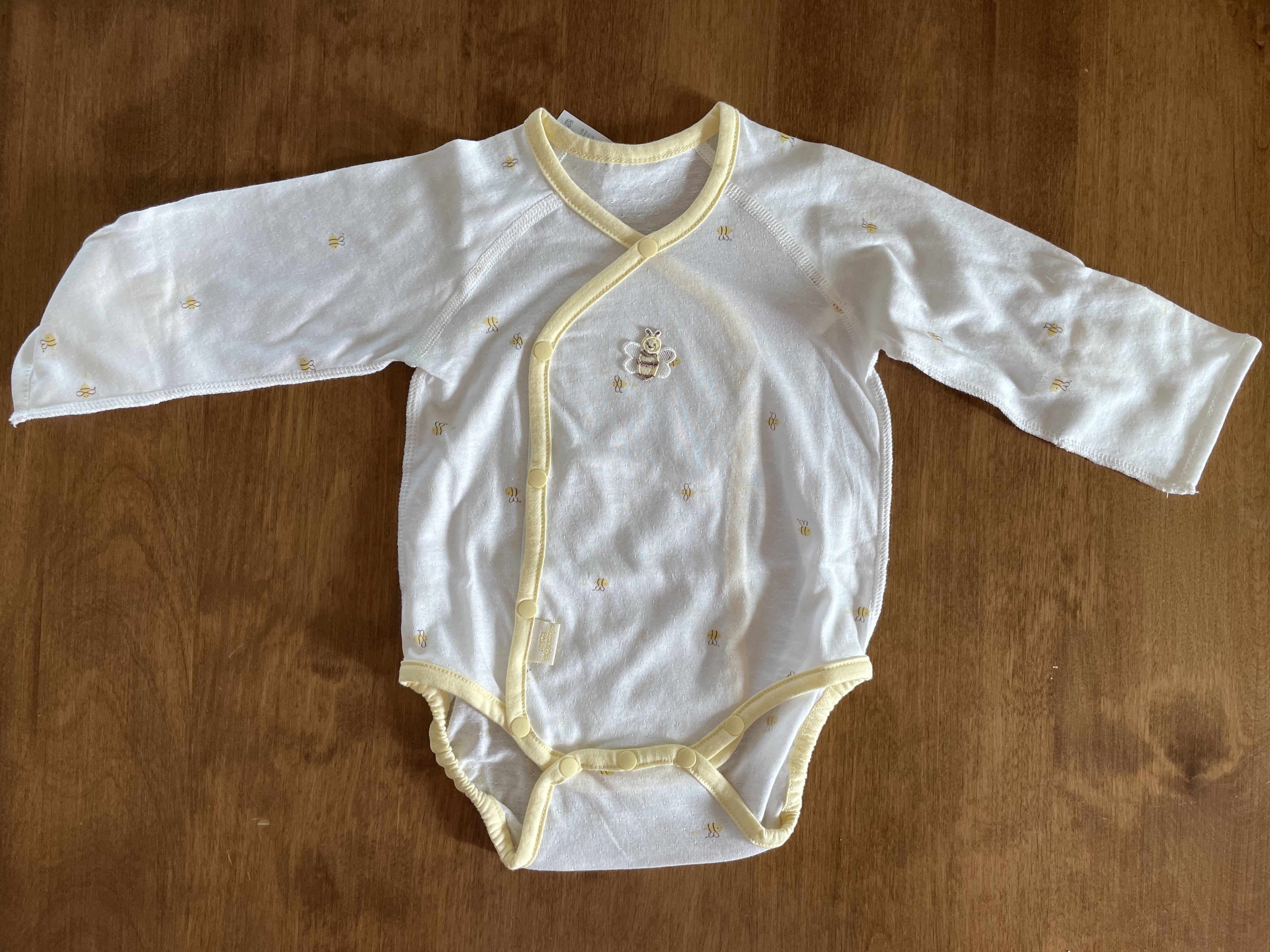 이 옷도 점프 수트 같이 일체형으로 되어 있습니다. 옷 사이즈를 보면 아시겠지만 이 옷도 조금 컸을 때 입는 옷이라고 합니다. 이걸 입고 아장아장 걸어다닐 아기를 생각하니 벌써부터 감동이 밀려옵니다.
