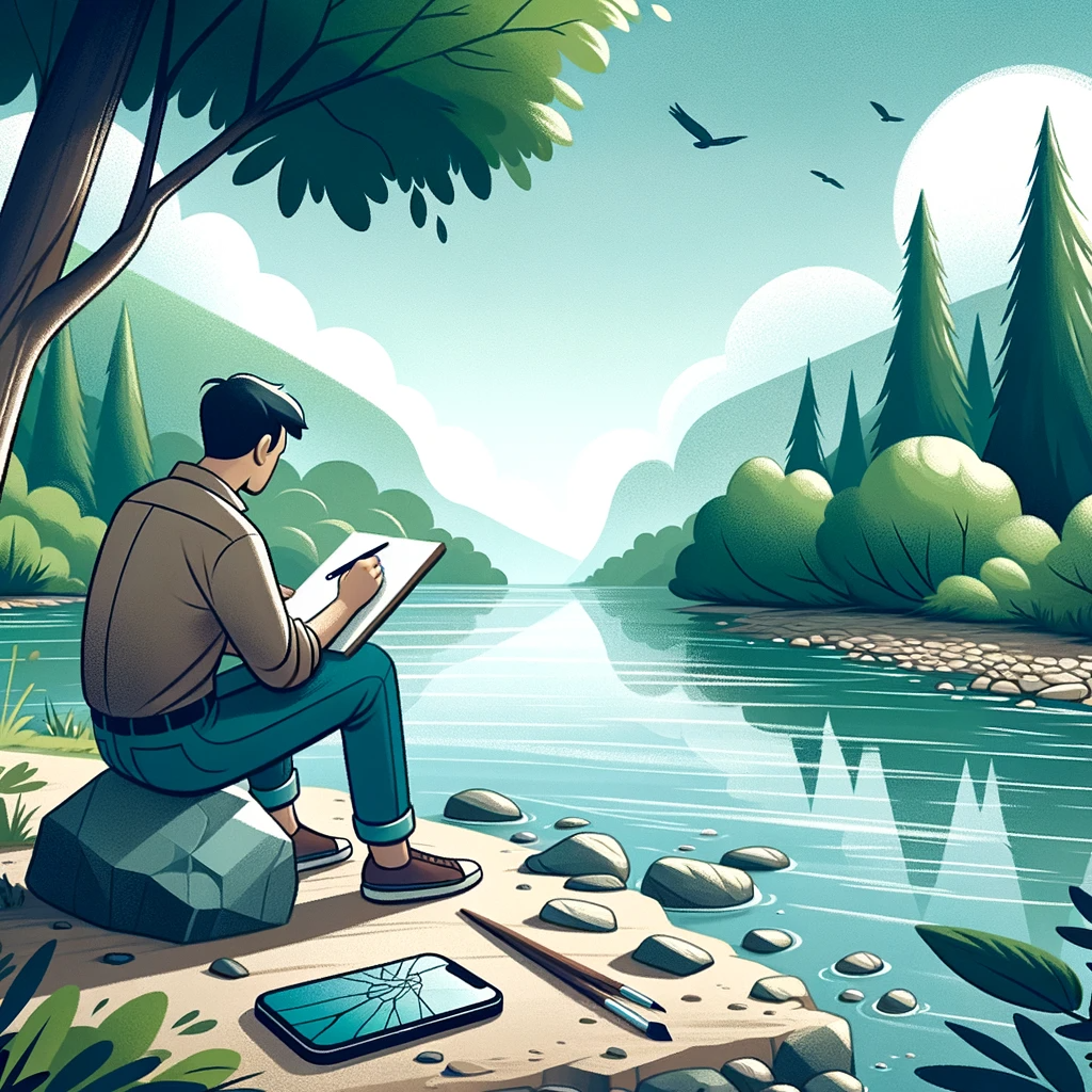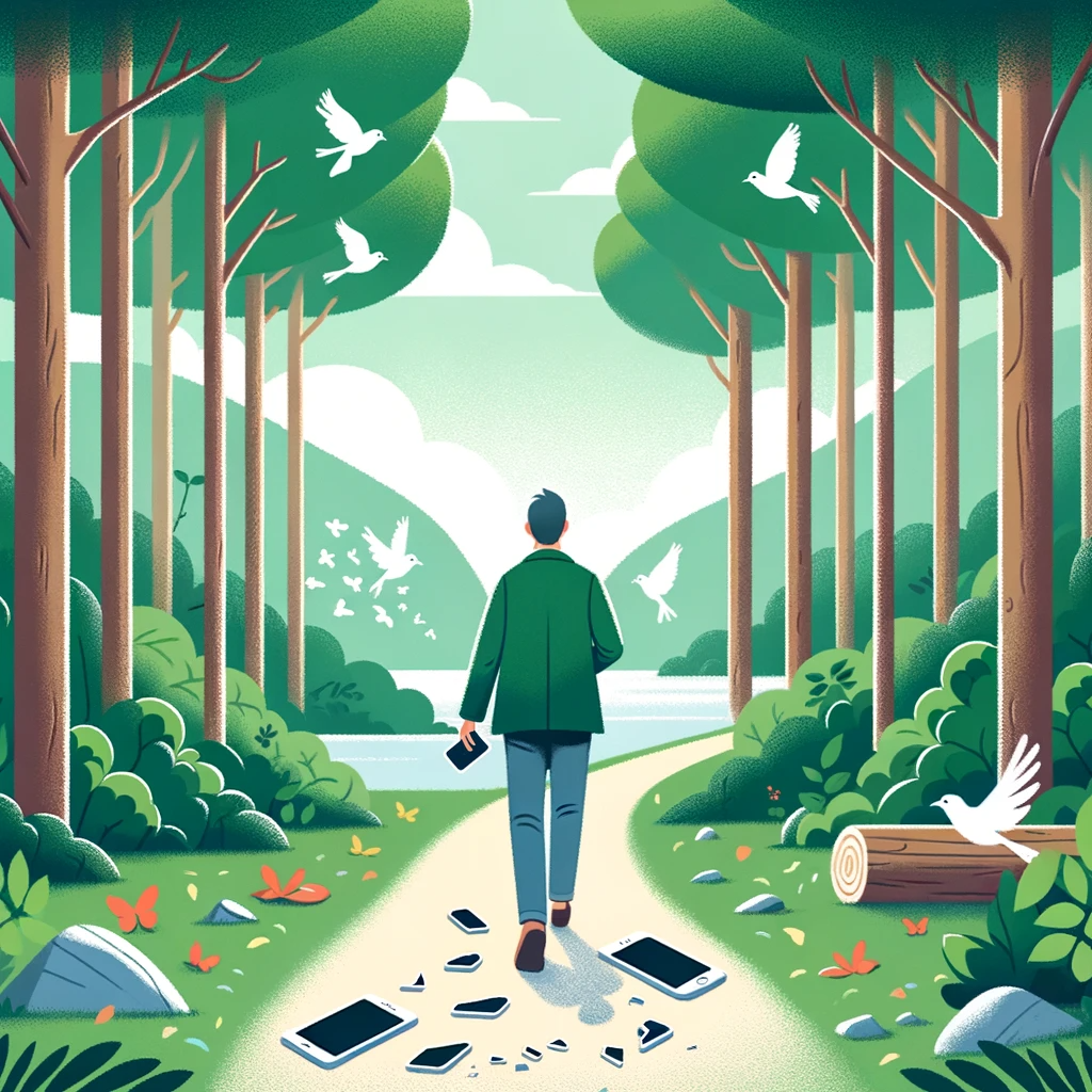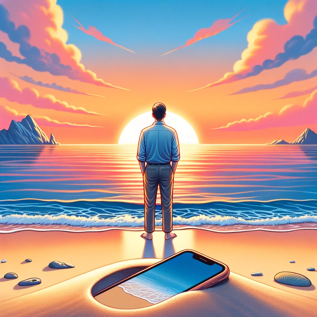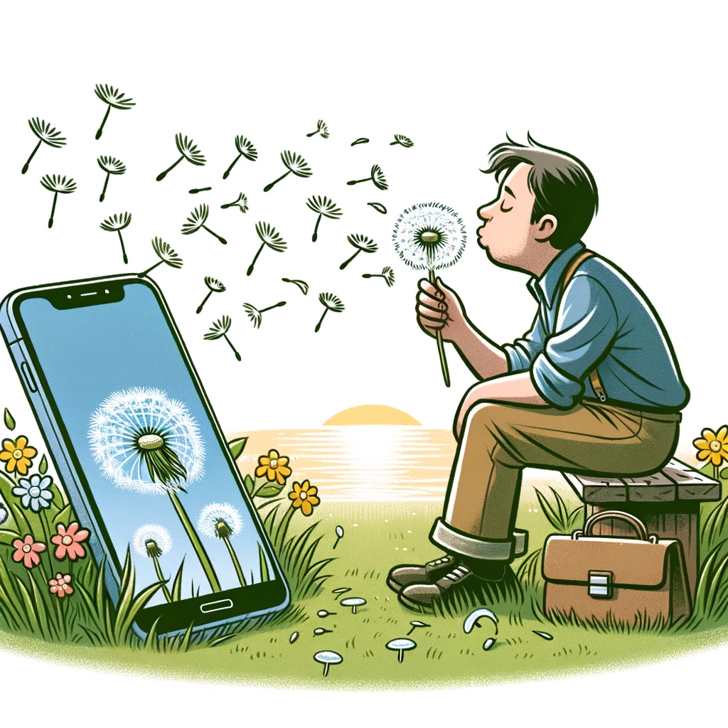 휴대폰 중독에서 해방된 남자의 모습을 카툰 형태로 만들어달라고 했습니다.
