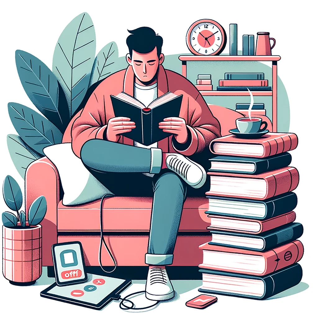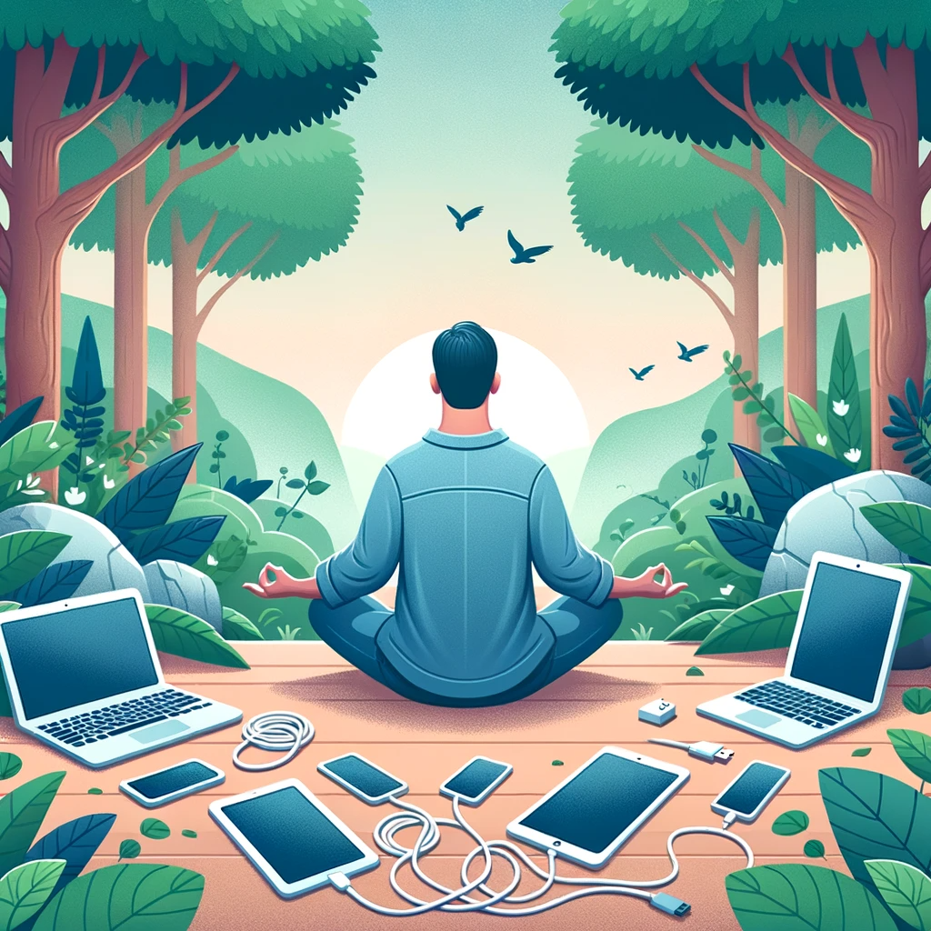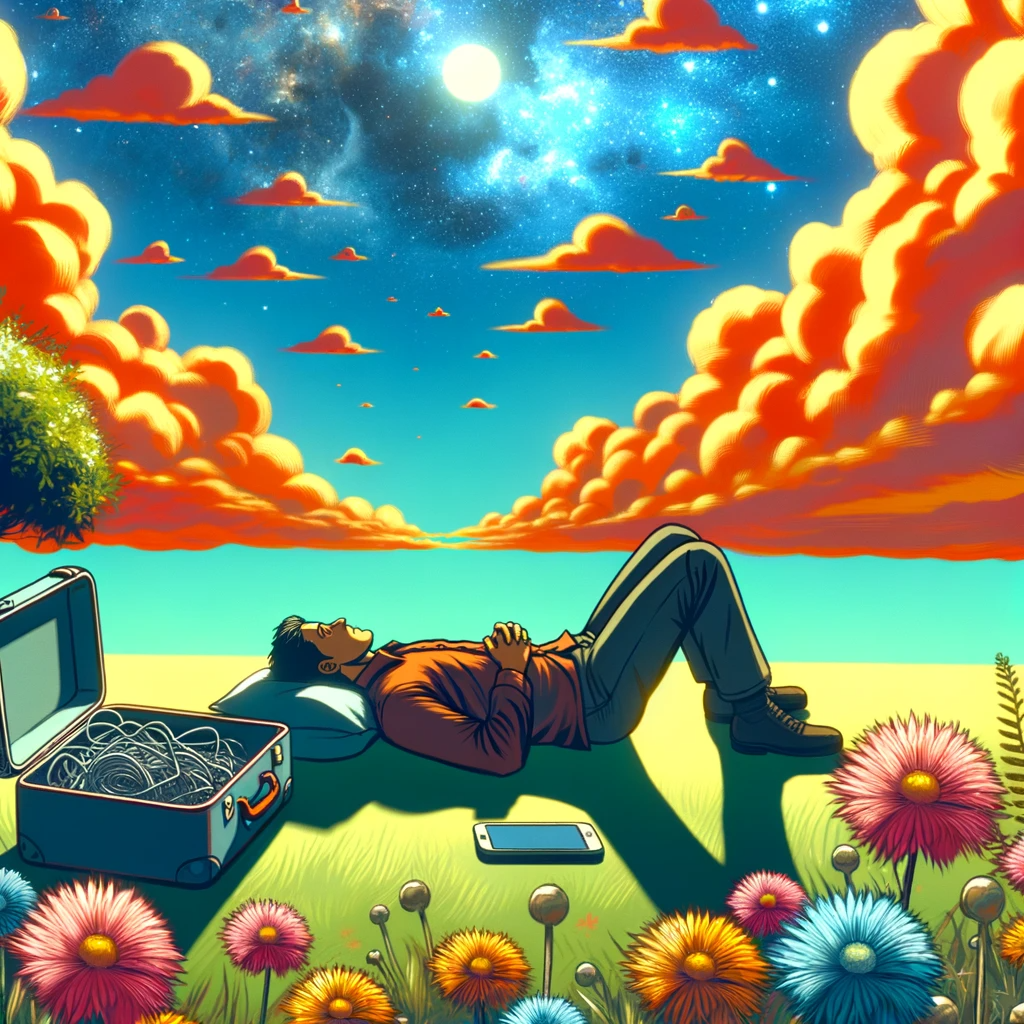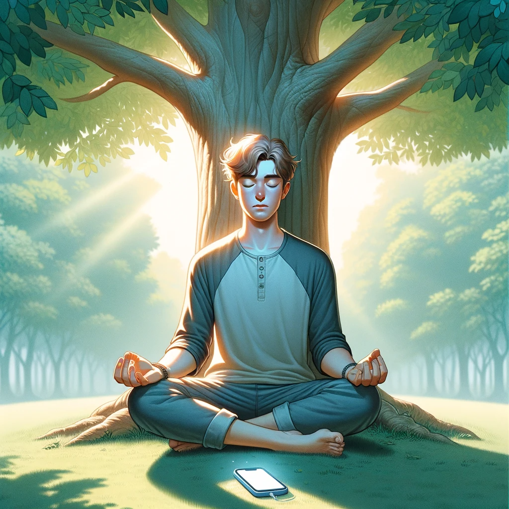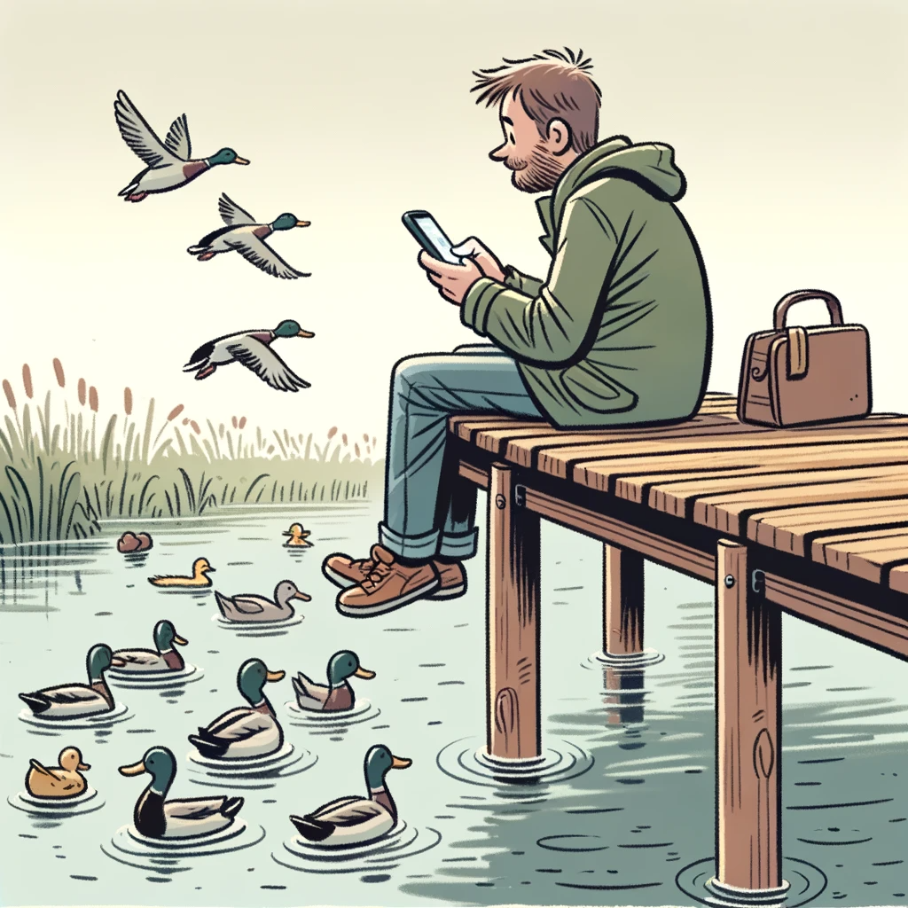 휴대폰 중독에서 해방된 남자의 모습을 카툰 형태로 만들어달라고 했습니다.