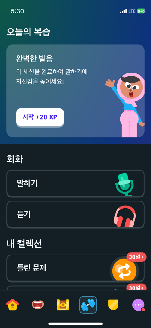 다른 건 말고 회화 기능을 집중 학습 하고 싶으면, 아래 기능을 이용해도 됩니다.