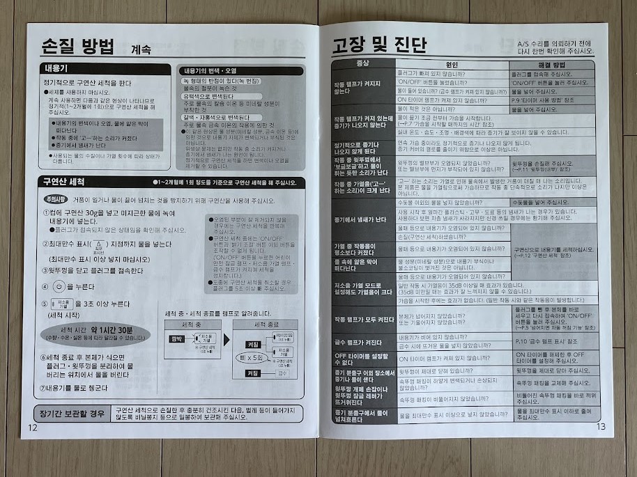 - 구연산을 활용한 자동 세척 기능이 있다.