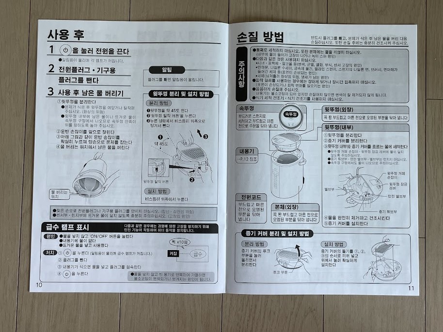 - 처음 끓는데 까지는 시간이 조금 오래 걸린다.