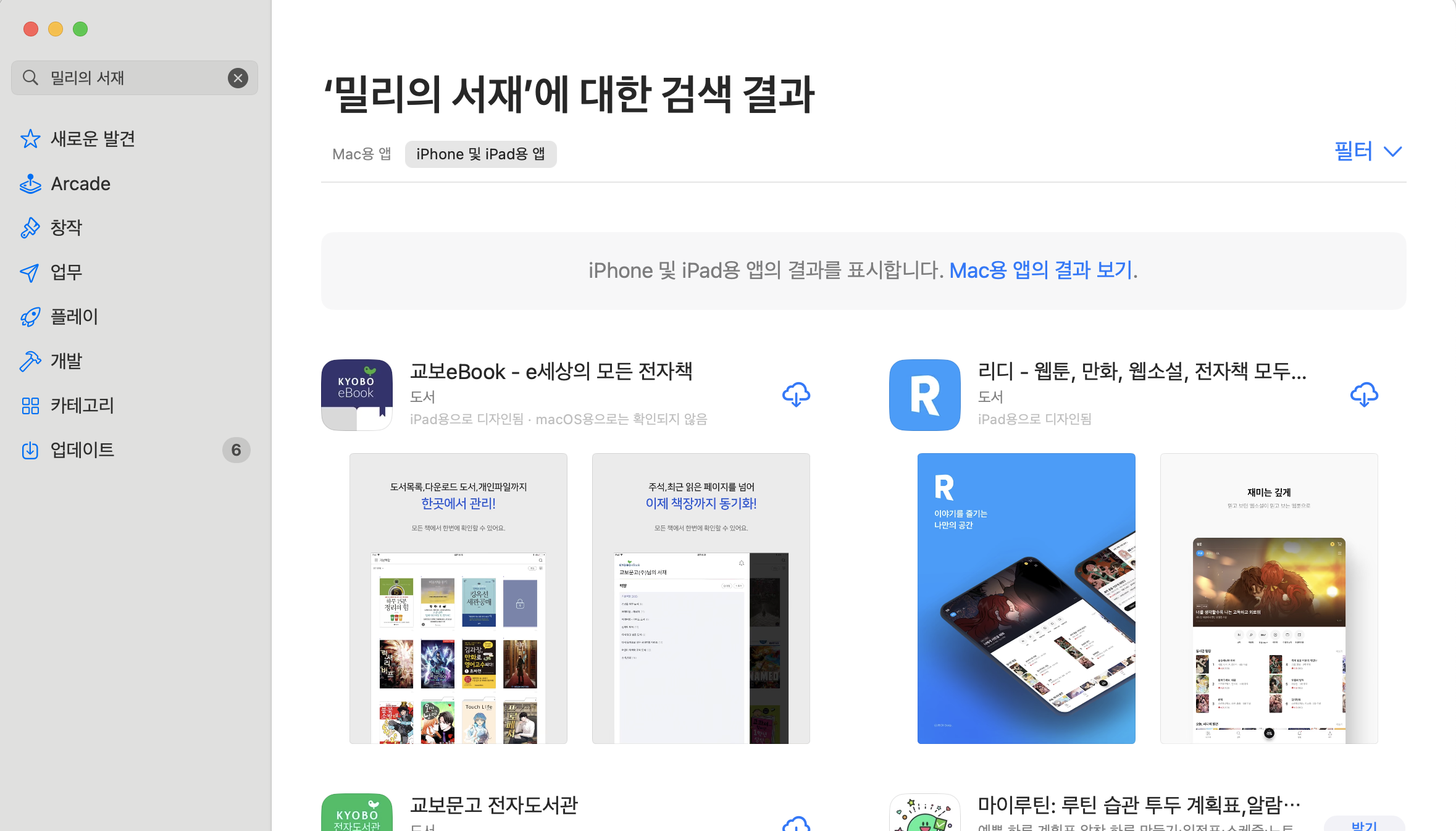 알고보니 밀리의 서재 홈페이지에서 별도로 맥용 뷰어를 받아야 하더군요.