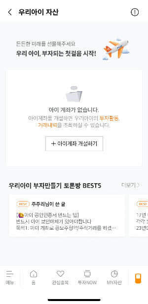 저는 "미래에셋증권" 모바일 앱을 이용해서 자녀 계좌를 개설할 예정이며