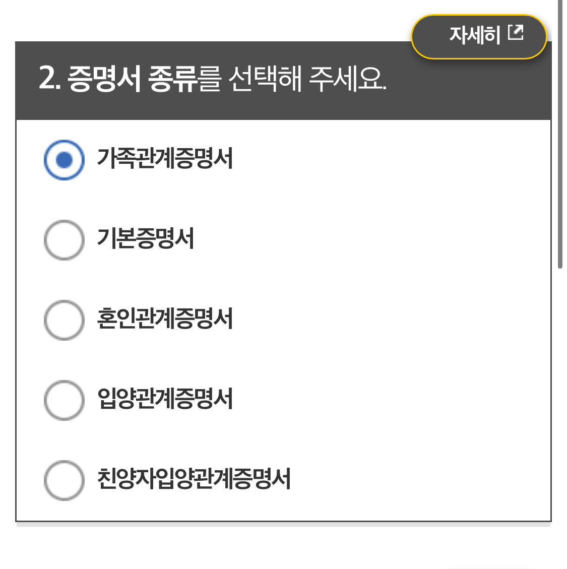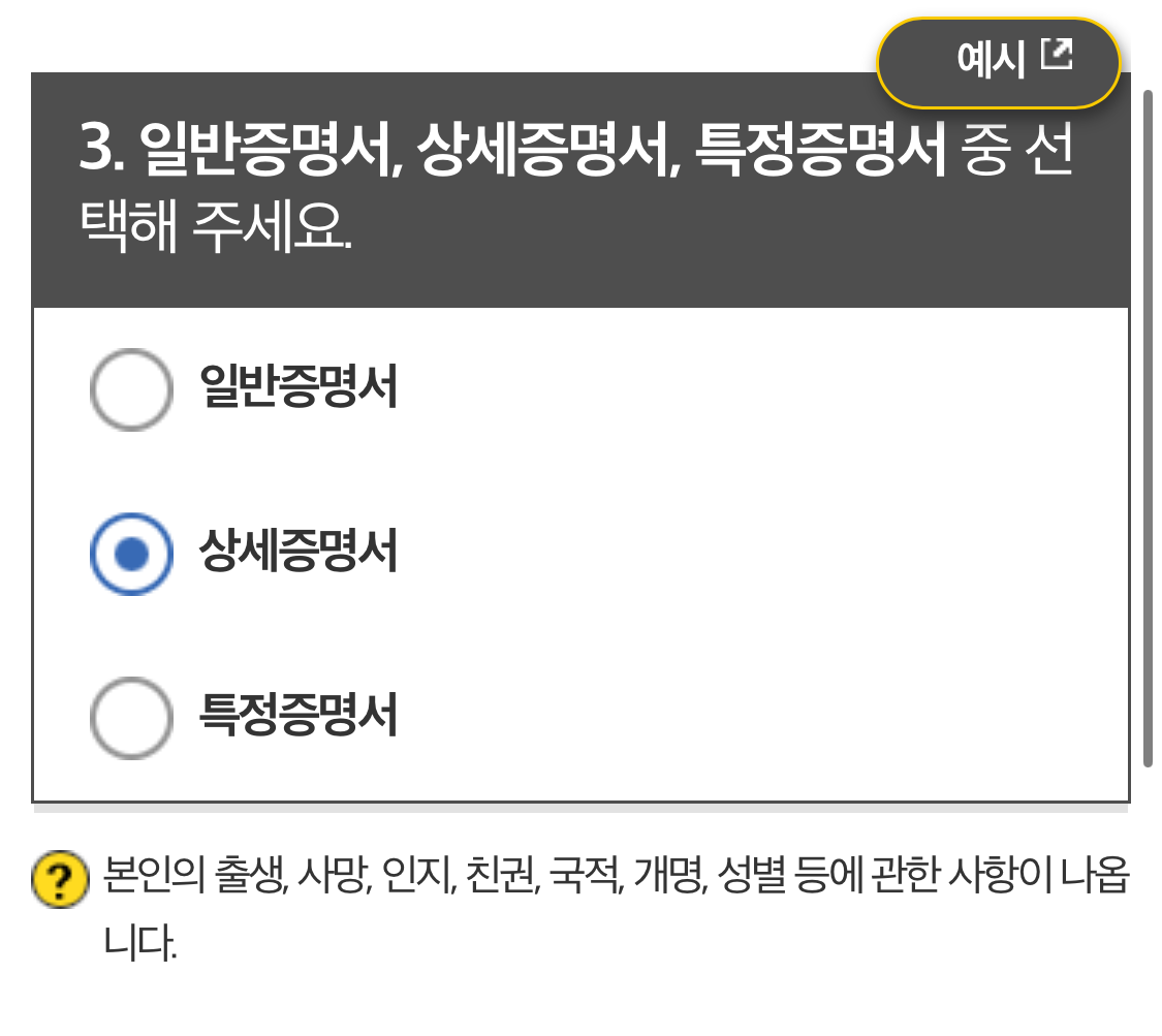 - 가족관계증명서 - 특정증명서로 선택