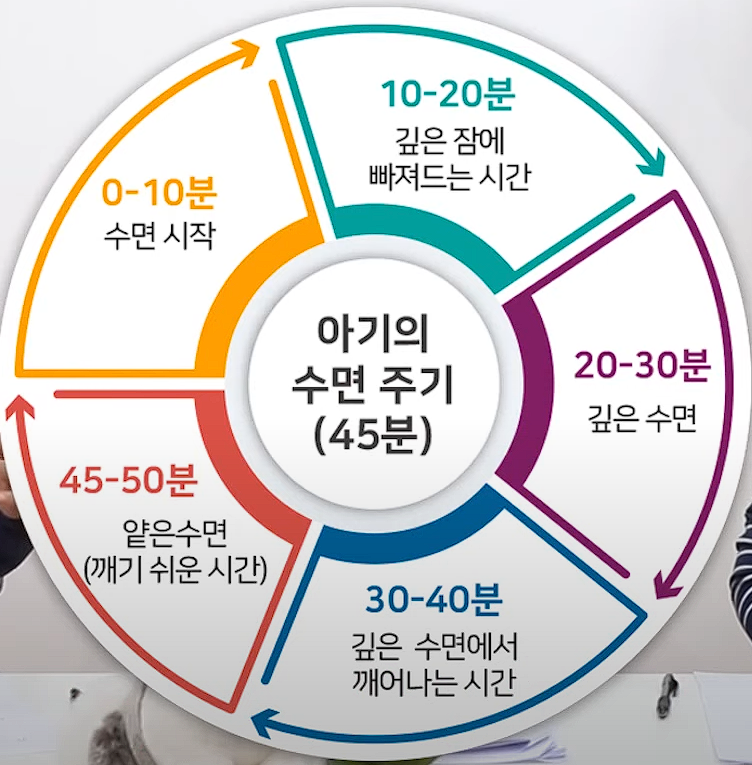 보통 아기들은 45분 주기로 수면을 취한다고 합니다.