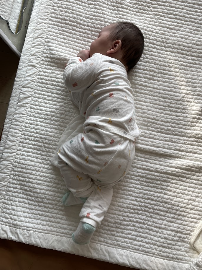 - 푹신한 쿠션형 매트를 치우고, 아기 체육관의 바닥면만 이용하거나 딱딱한 토퍼에 아기를 눕혀둠