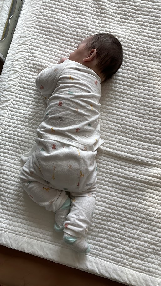 이 때가 125일 쯤 되는 시기인데, 저 수면 조끼는 12~24개월 아기가 입는 90 사이즈 입니다.