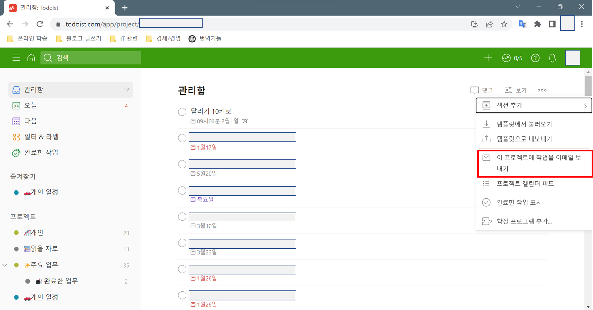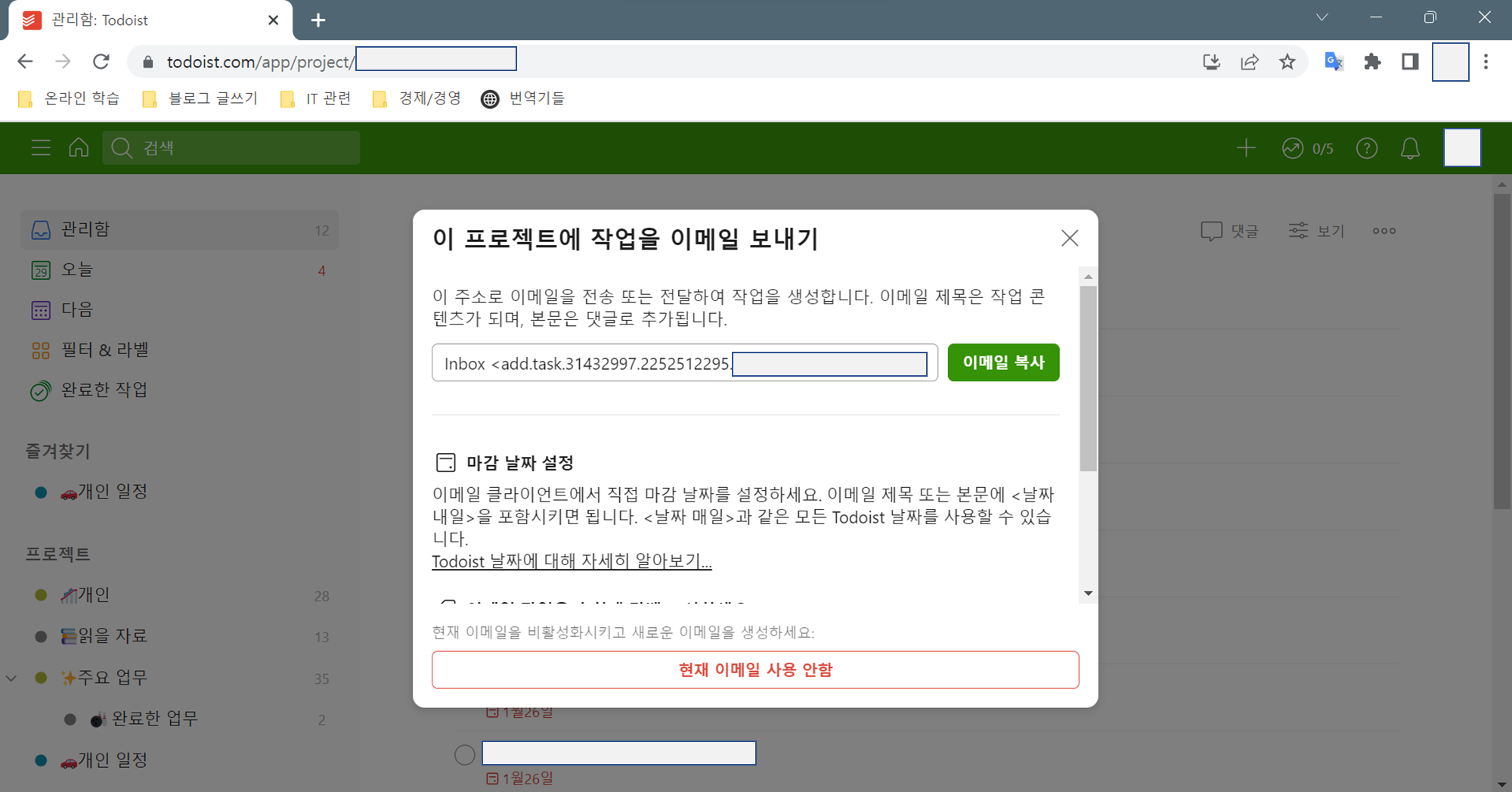 [Todoist 관리함 메일주소로 메일 보내보기]