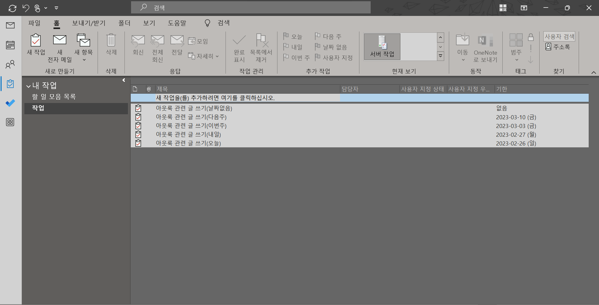 Outlook으로 접속한 후, 좌측의 내 작업 목록탭으로 이동합니다.