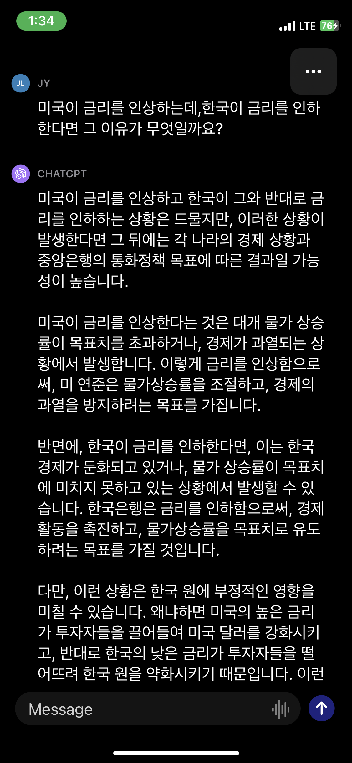 최근 기사에서는 금리차가 역대 최대라는 기사였습니다. 그래서 그 내용을 Gpt에 물어보았습니다.