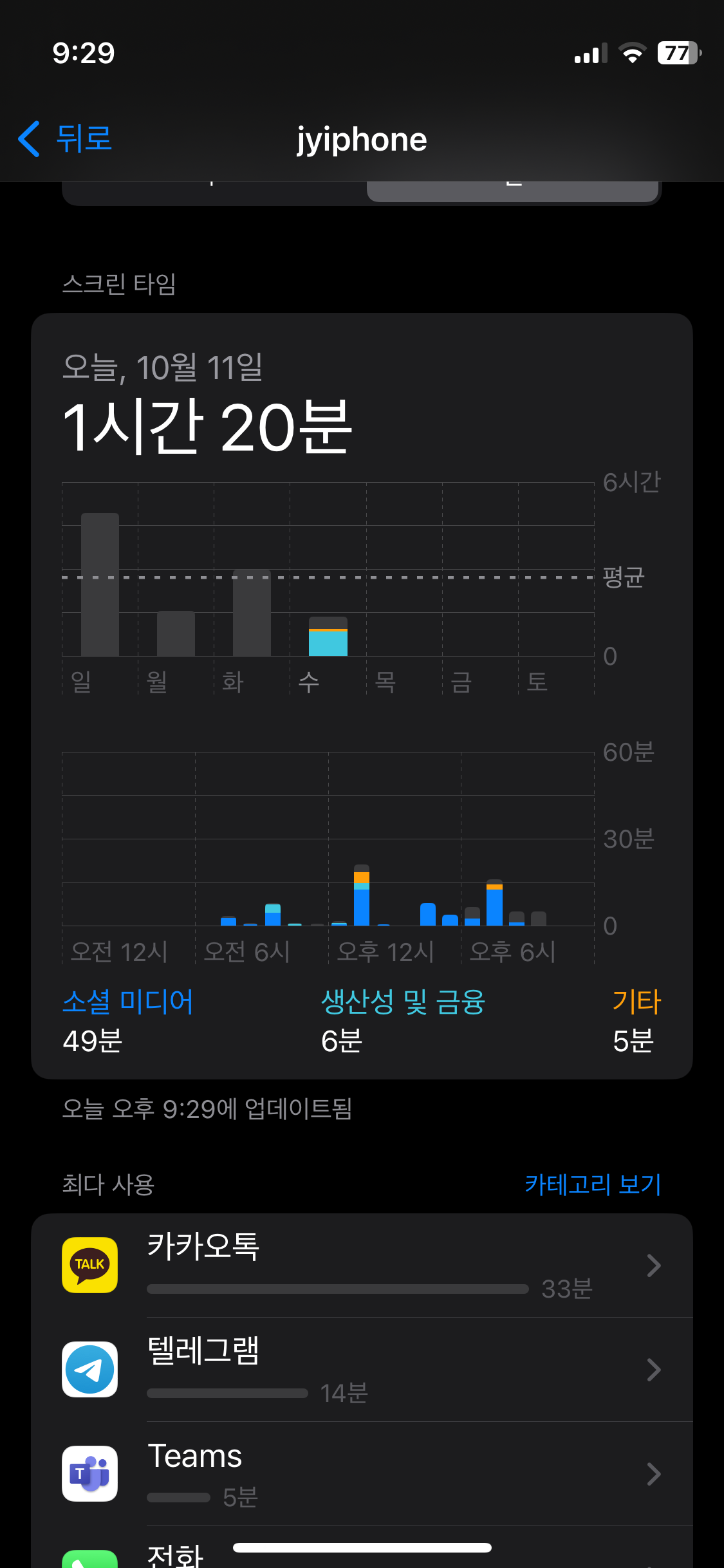 어제 휴대폰 사용 기록은 2시간 38분이었습니다.