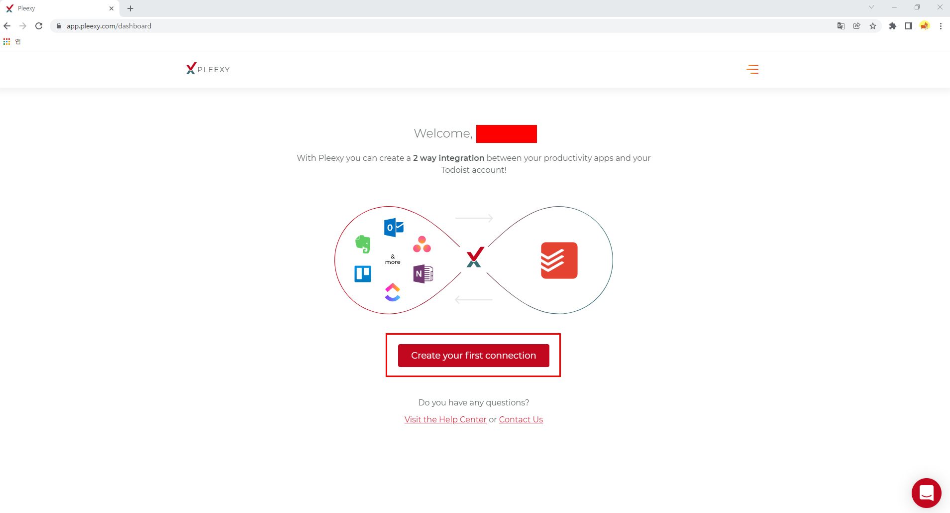 1. Pleexy 사이트로 이동 및 Todoist로 로그인