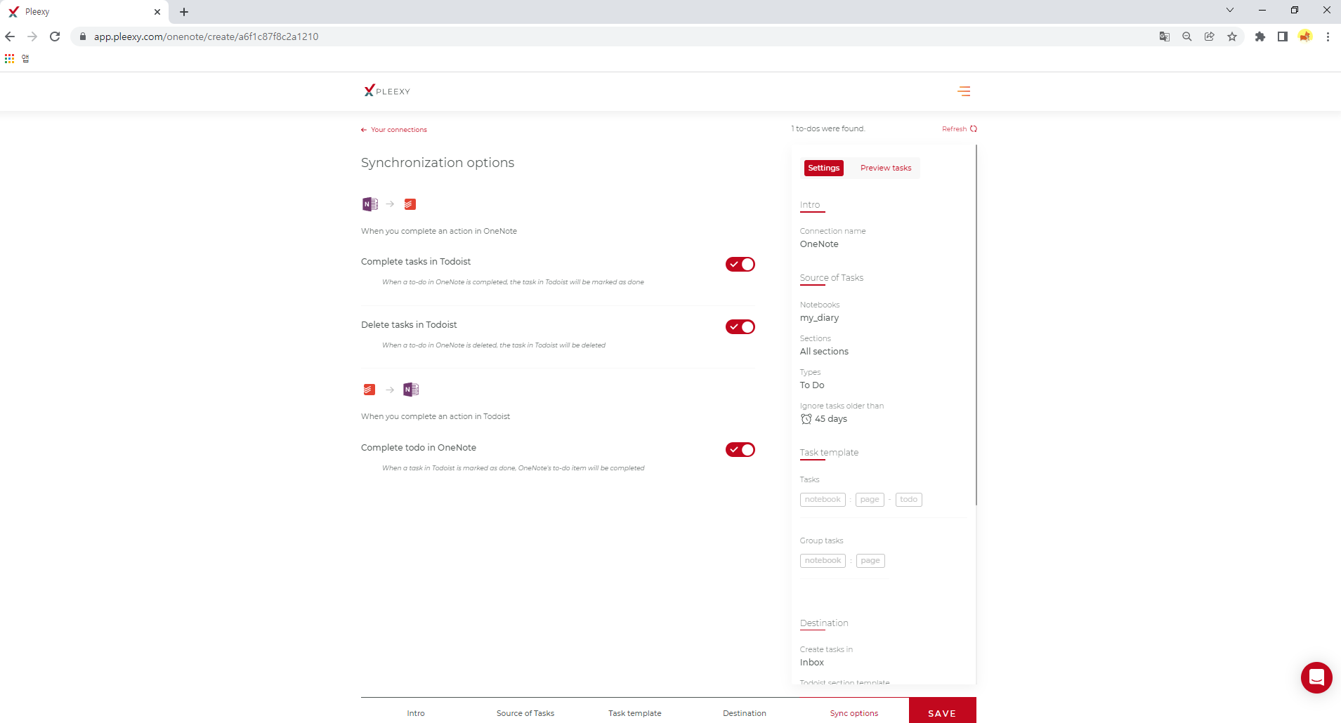 - 그 다음 마지막 단계는 동기화 옵션이다. 나는 양방향으로 완료/삭제되길 원하기 때문에 두 옵션 모두 활성화 시켰다.