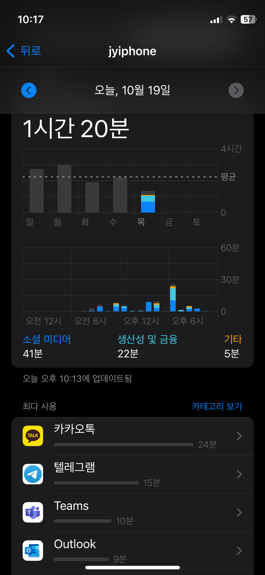 1주차 일평균: 1시간 57분(총 13시간 45분)