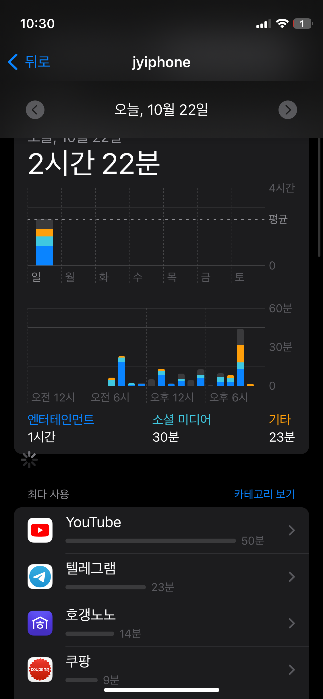 1주차 일평균: 1시간 57분(총 13시간 45분)