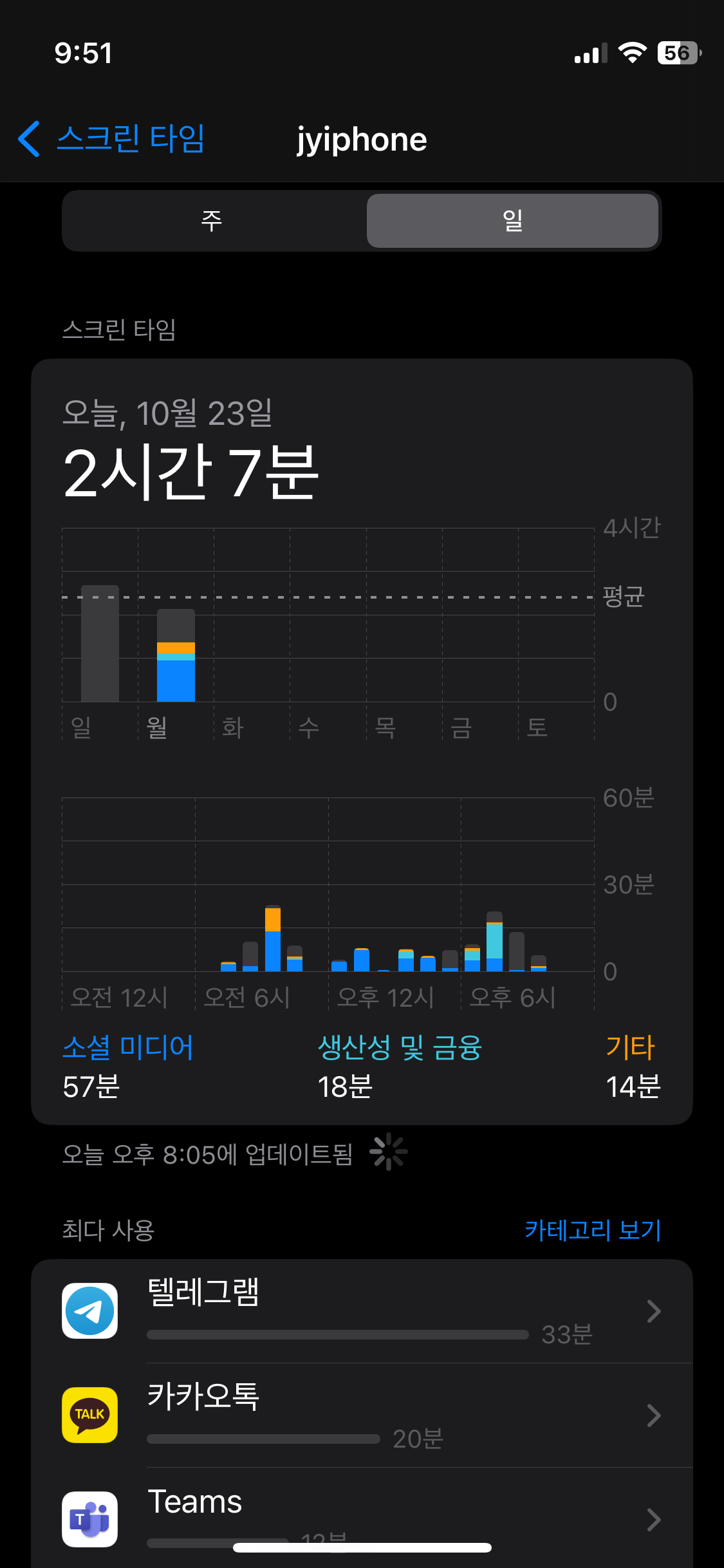2시간 7분으로 오늘도 2시간을 넘겼습니다.