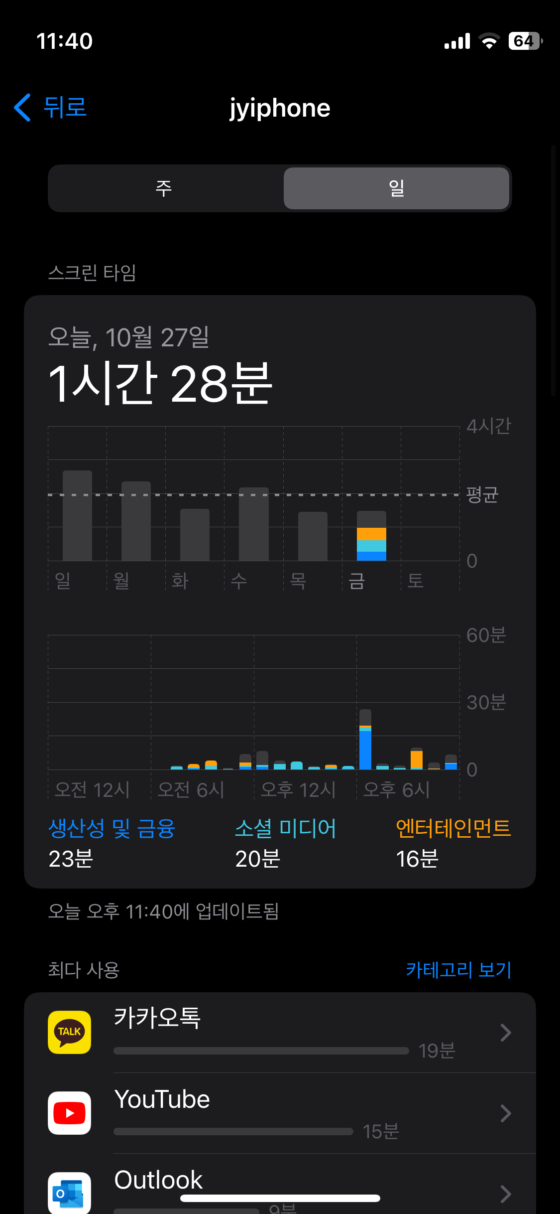 2주차 일평균: 1시간 54분(총 13시간 17분)