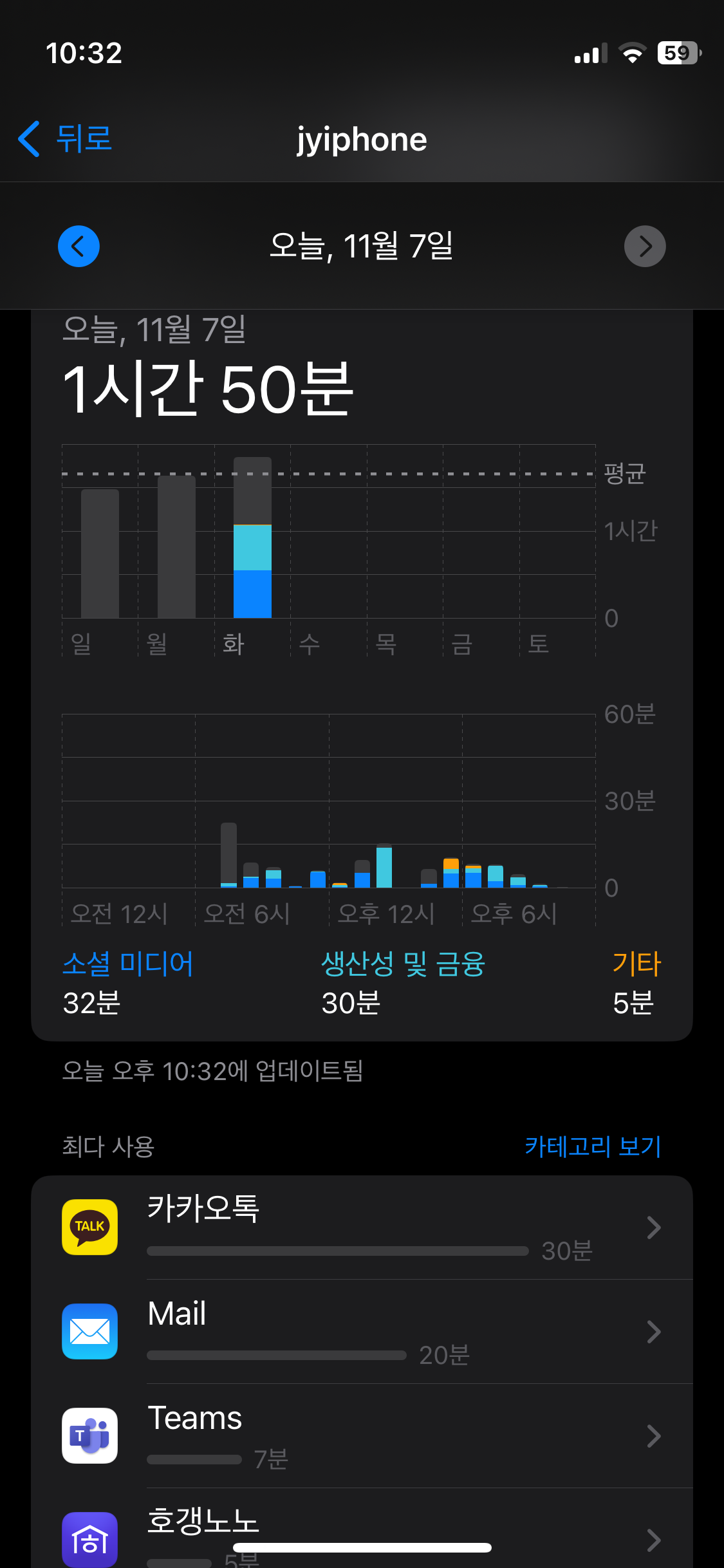 이제 점점 휴대폰 사용 시간 범위에 대해서 몸으로 체감하는 것 같습니다.