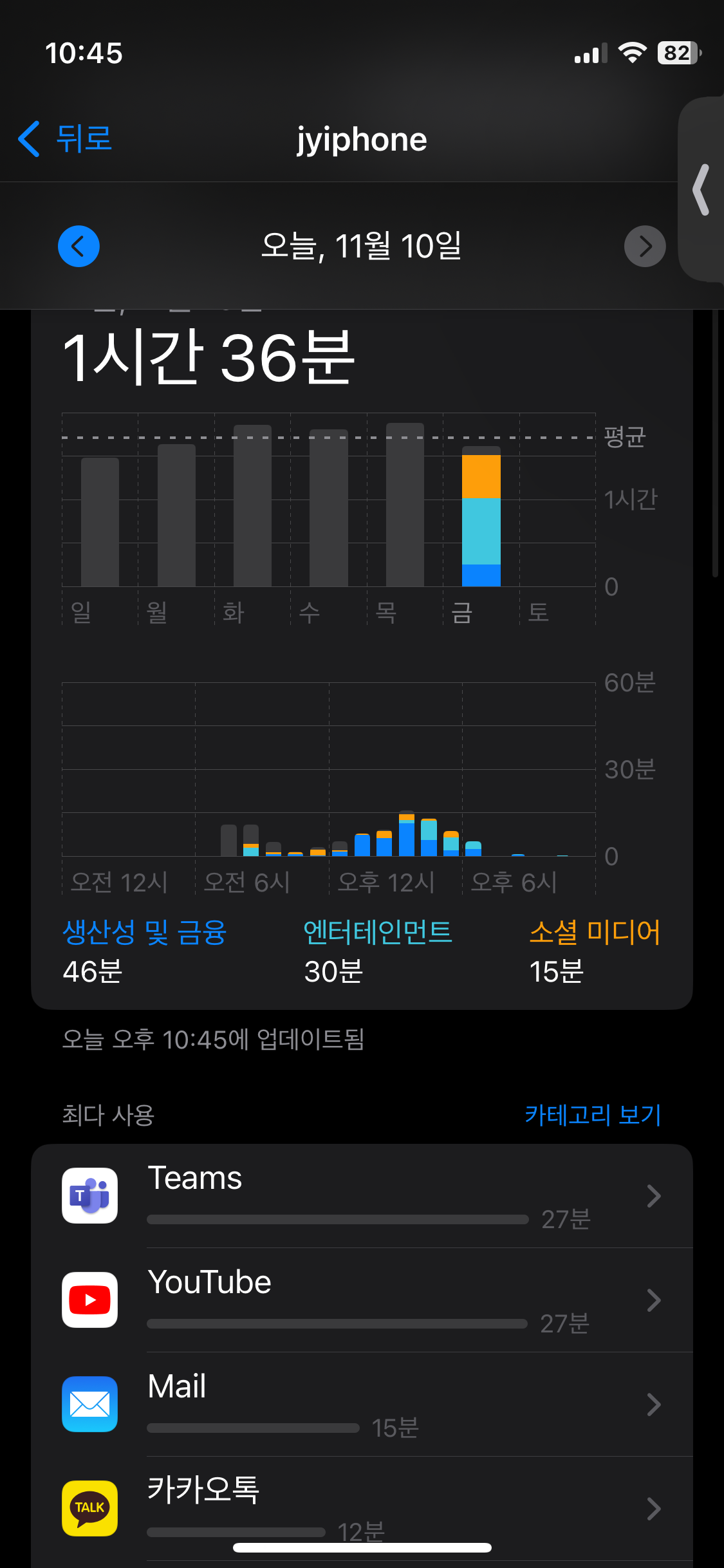 유튜브 사용량이 자꾸 높은 순위를 차지합니다.