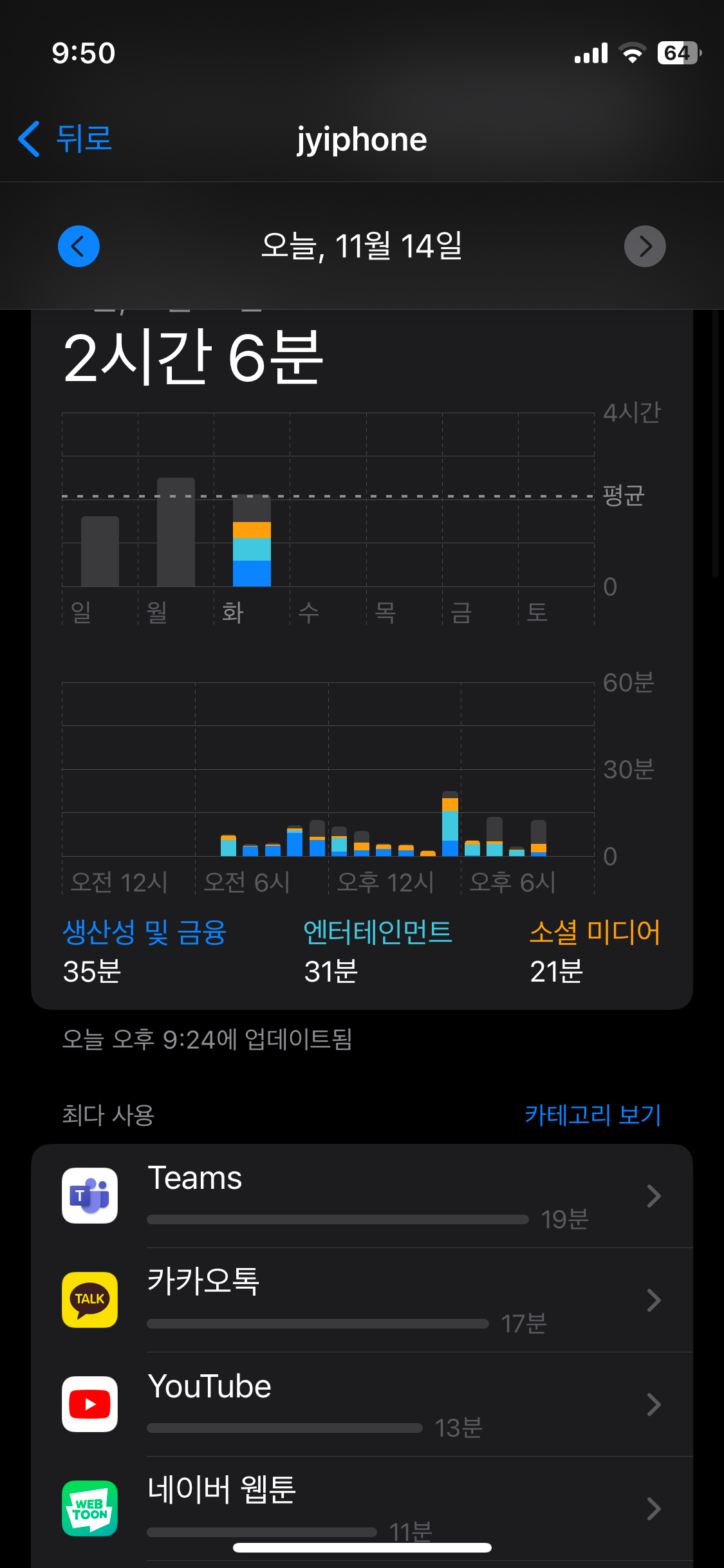36일차인 오늘은 2시간 6분을 사용했습니다.