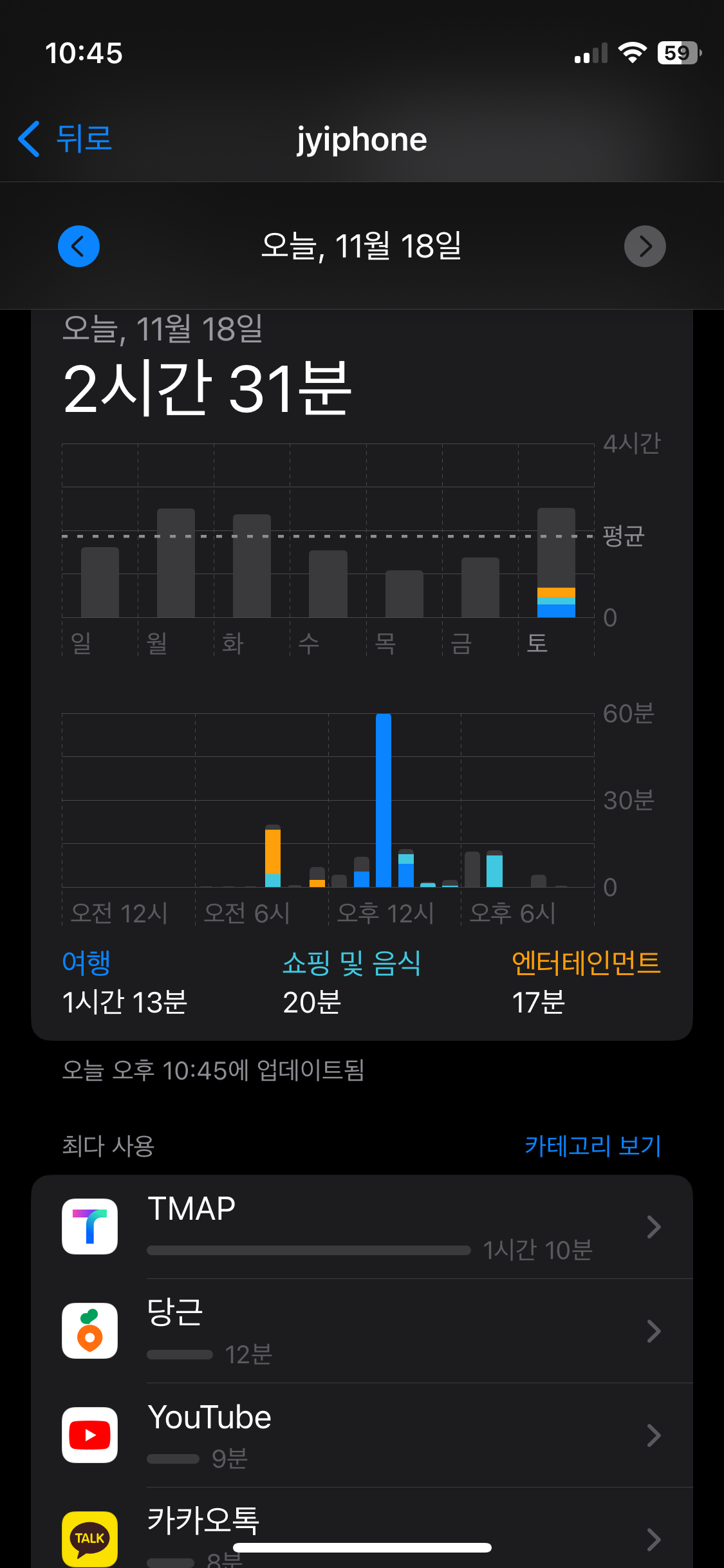 실제 휴대폰 사용 시간은 1시간 21분으로 볼 수 있겠군요.