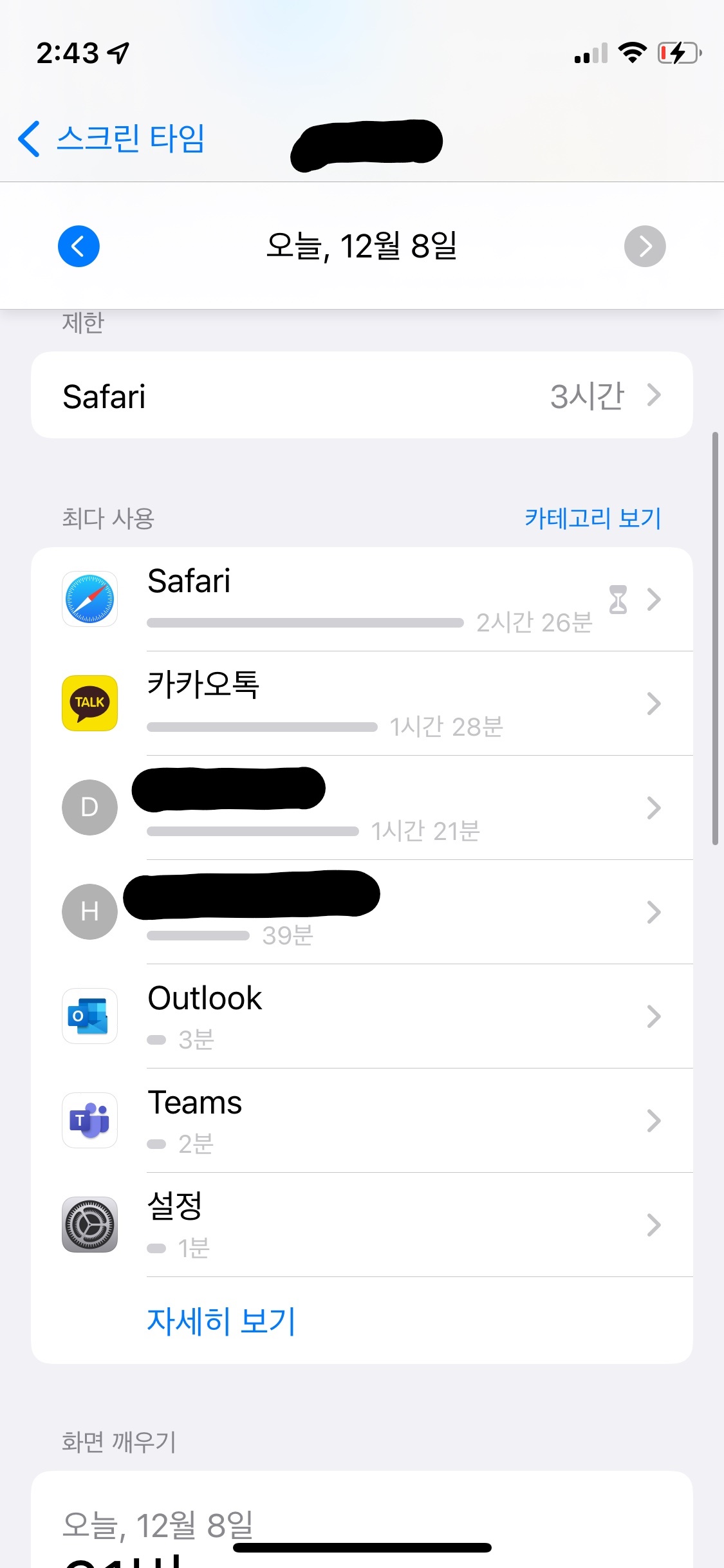 설정에서 스크린 타임에 들어가면 바로 확인할 수 있다. (놀랄 것이다)