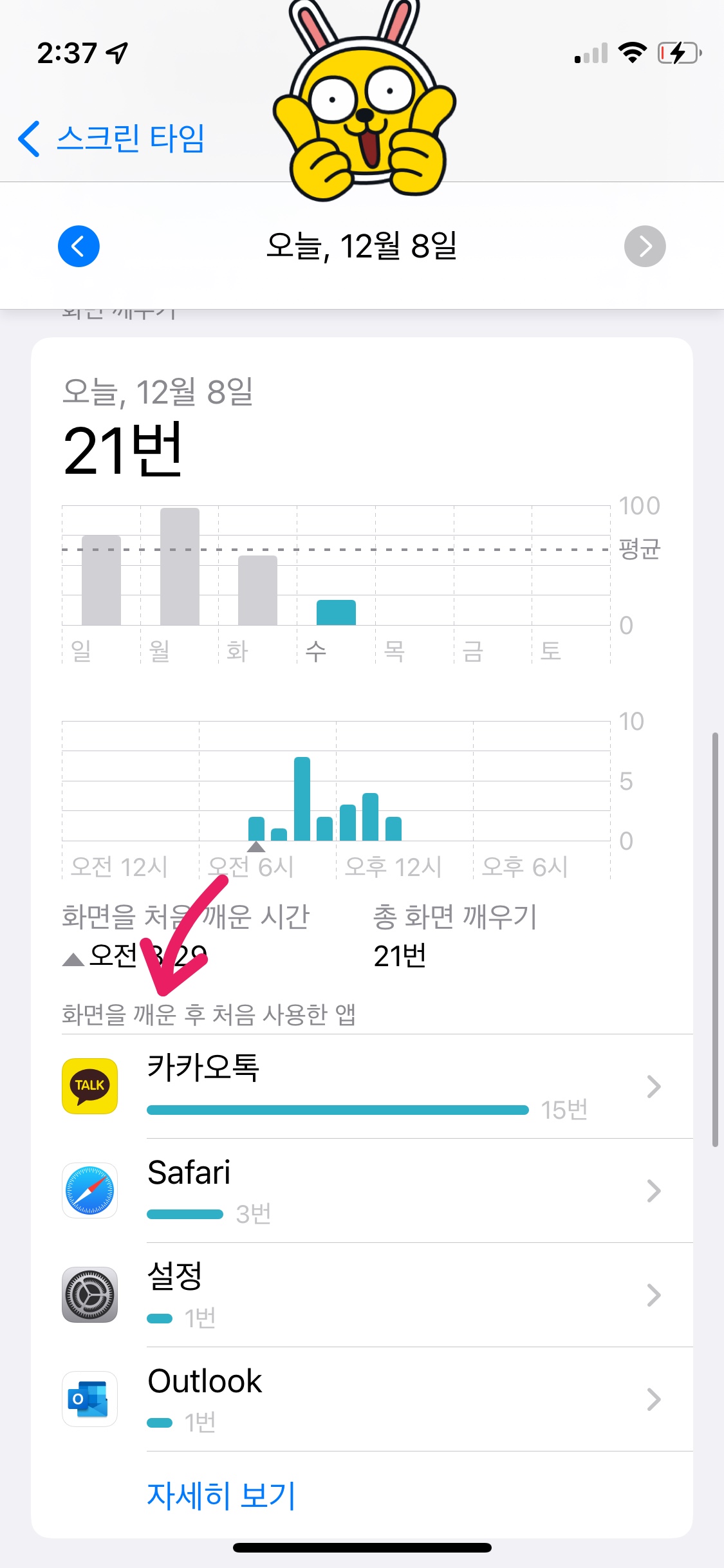 이런 기능이 있는지는 몰랐는데, 무엇을 위해 휴대폰을 켰는지 까지도 횟수를 확인할 수 있다.