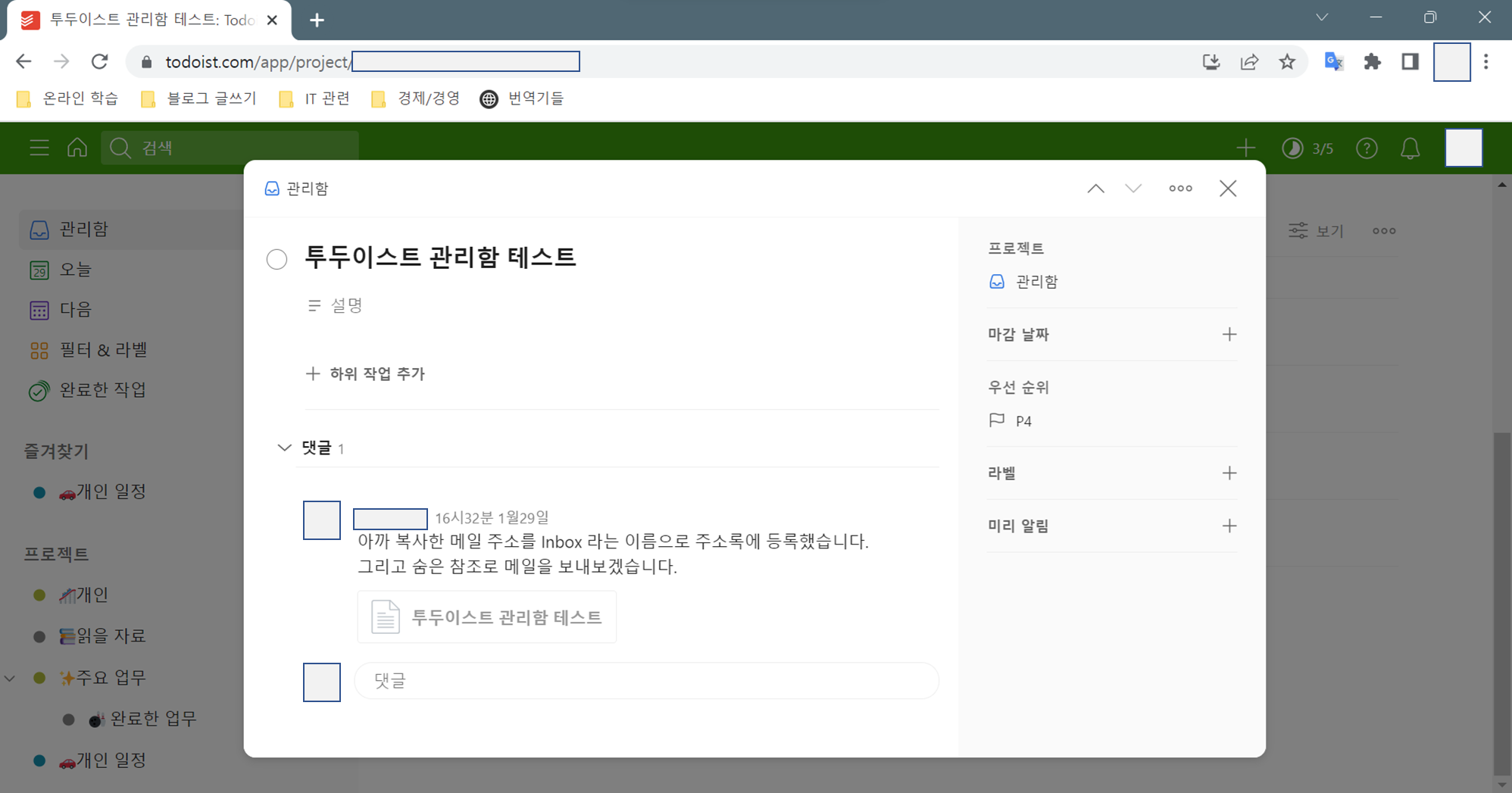 [Todoist 관리함 메일주소로 메일 보내보기]